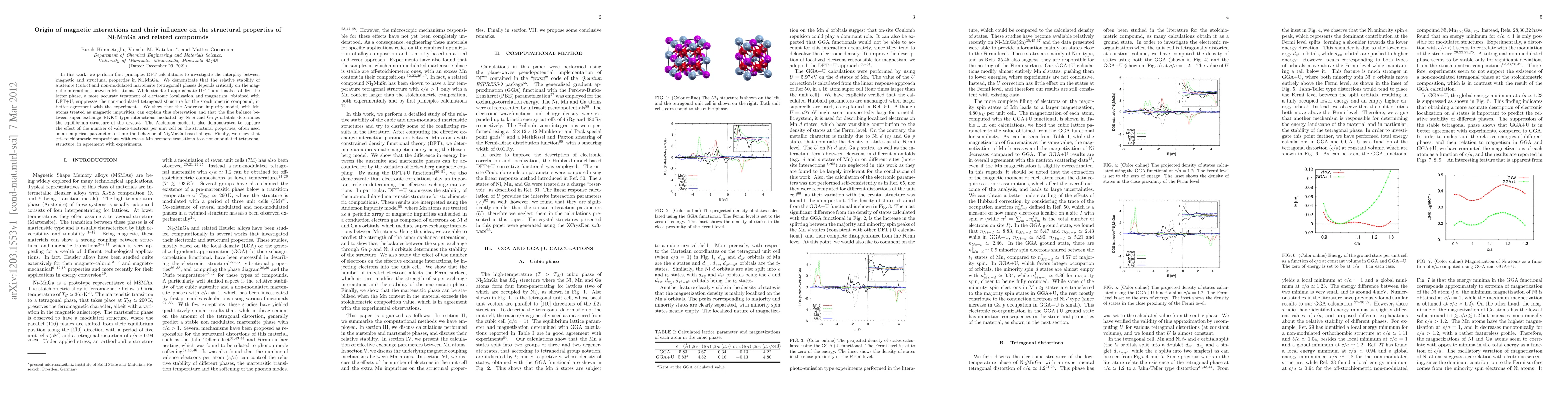 In this work, we perform first principles DFT calculations to investigate the interplay between magnetic and structural properties in Ni2MnGa. We demonstrate that the relative stability of austenite (cubic) and non-modulated martensite (tetragonal) phases depends critically on the magnetic interactions between Mn atoms. While standard approximate DFT functionals stabilize the latter phase, a more accurate treatment of electronic localization and magnetism, obtained with DFT+U, suppresses the non-modulated tetragonal structure for the stoichiometric compound, in better agreement with the experiments. We show that the Anderson impurity model, with Mn atoms treated as magnetic impurities, can explain this observation and that the fine balance between super-exchange RKKY type interactions mediated by Ni d and Ga p orbitals determines the equilibrium structure of the crystal. The Anderson model is also demonstrated to capture the effect of the number of valence electrons per unit cell on the structural properties, often used as an empirical parameter to tune the behavior of Ni2MnGa based alloys. Finally, we show that off-stoichiometric compositions with excess Mn promote transitions to a non-modulated tetragonal structure, in agreement with experiments.