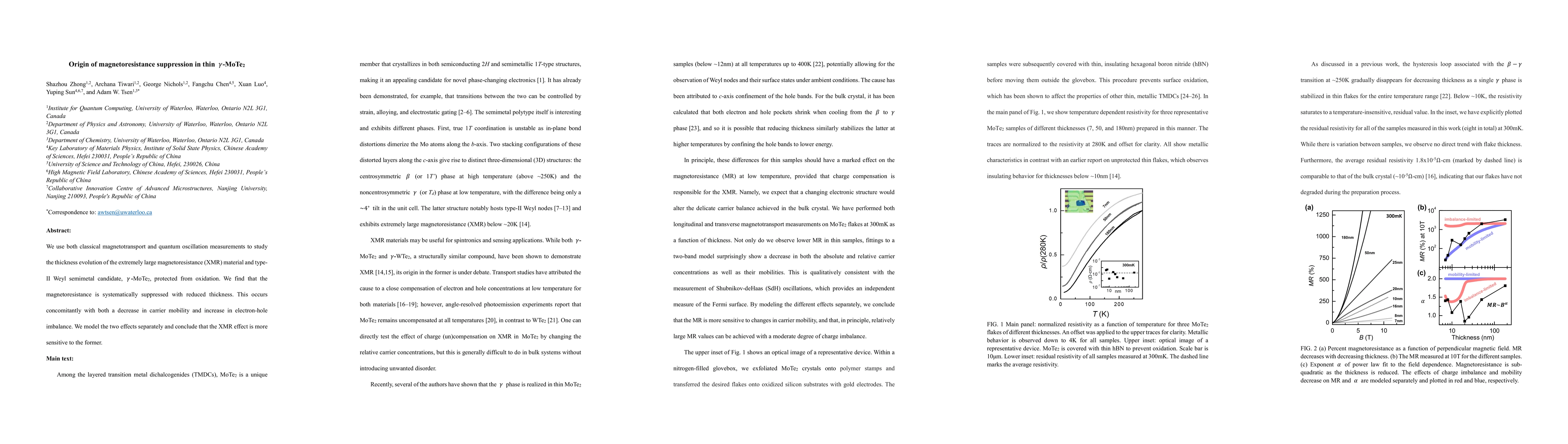 The study investigates the suppression of magnetoresistance in thin $gamma$-MoTe$_2$, a Weyl semimetal candidate. Using magnetotransport and quantum oscillation measurements, the researchers found that thickness reduction leads to XMR suppression due to decreased carrier mobility, not electron-hole imbalance. The XMR effect is more impacted by reduced mobility.