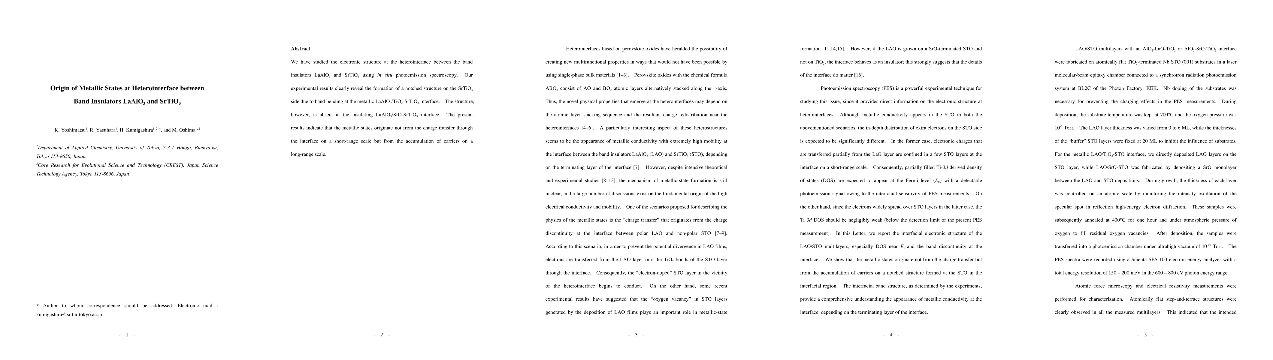 This research reveals the formation of metallic states at the interface between LaAlO$_3$ and SrTiO$_3$ due to long-range carrier accumulation rather than short-range charge transfer, as evidenced by notched structures observed via $in situ$ photoemission spectroscopy.