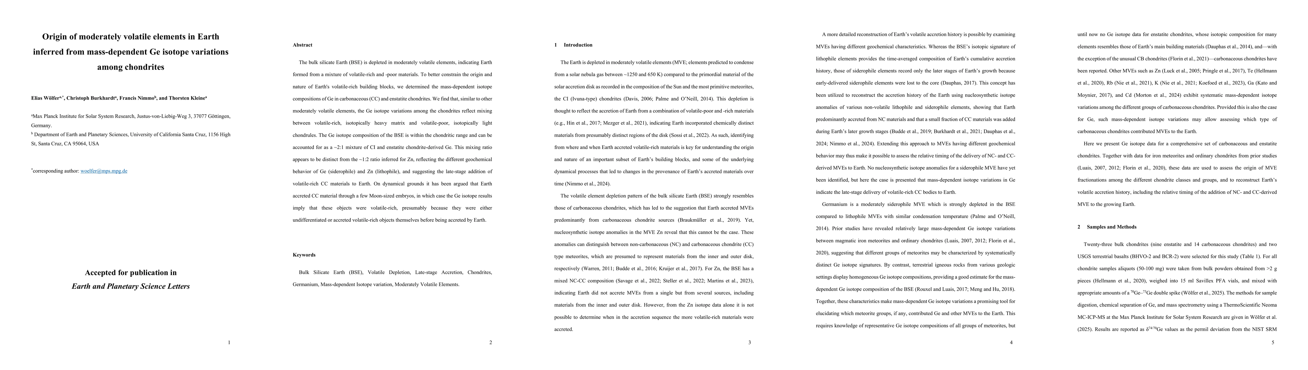 Research suggests Earth formed from a mixture of volatile-rich and -poor materials, with moderately volatile elements like Ge coming from mixing between these components. The discovery implies late-stage addition of volatile-rich carbonaceous chondrite materials to Earth.