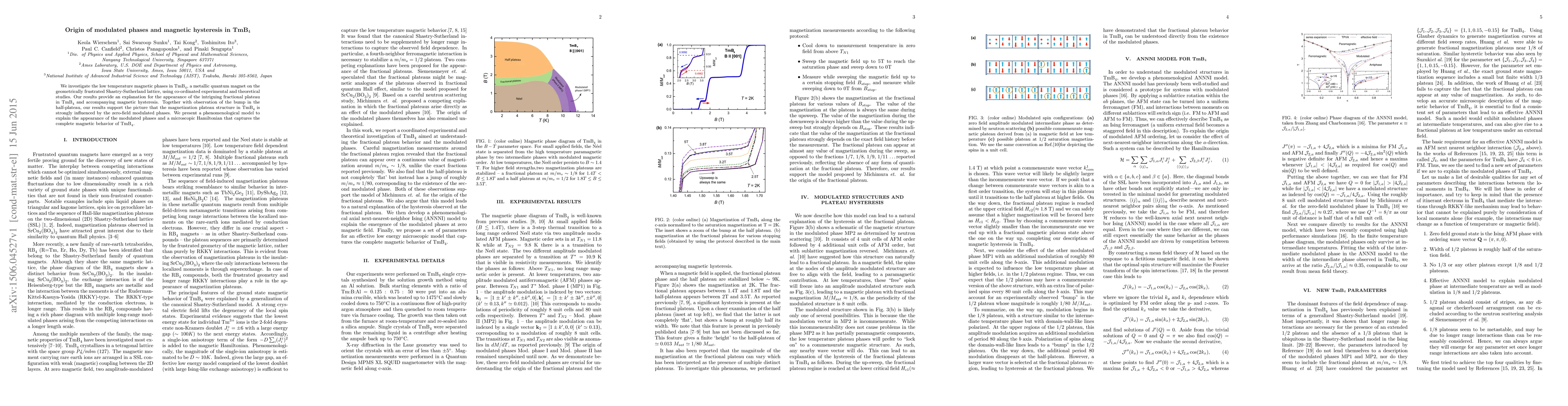 This study elucidates the magnetic phases in TmB_4, revealing the origin of fractional plateaus and magnetic hysteresis through combined experimental and theoretical analysis. The research supports a model explaining zero-field modulated phases and provides a microscopic Hamiltonian to capture TmB_4's magnetic behavior.