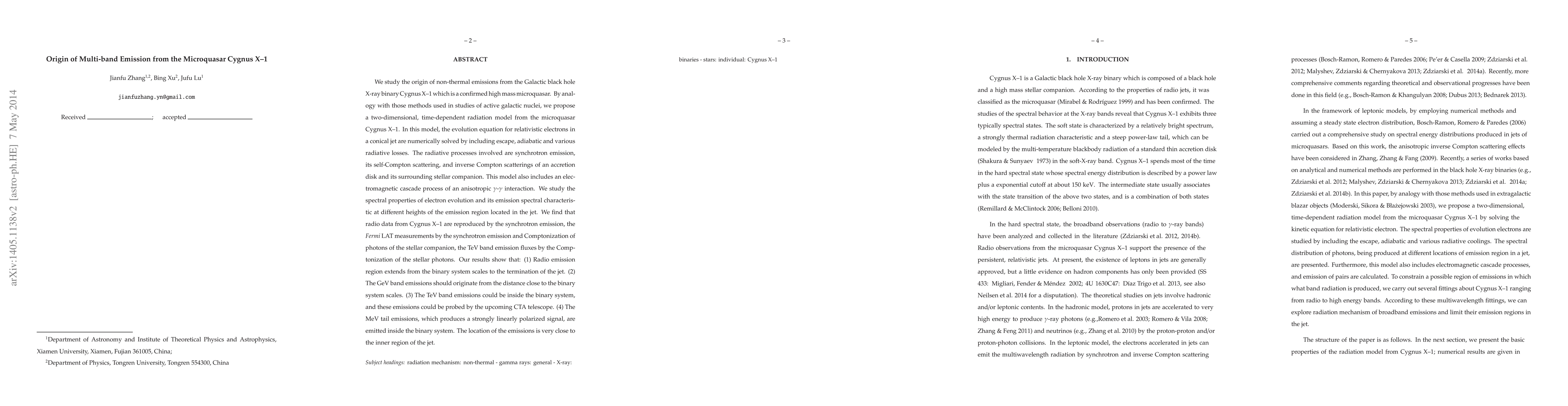 Researchers propose a 2D radiation model for Cygnus X-1 microquasar, reproducing its spectral properties with synchrotron emission and Comptonization of photons from the accretion disk and stellar companion. The results suggest radio emissions originate near the binary system, while TeV band emissions could be inside the binary system.
