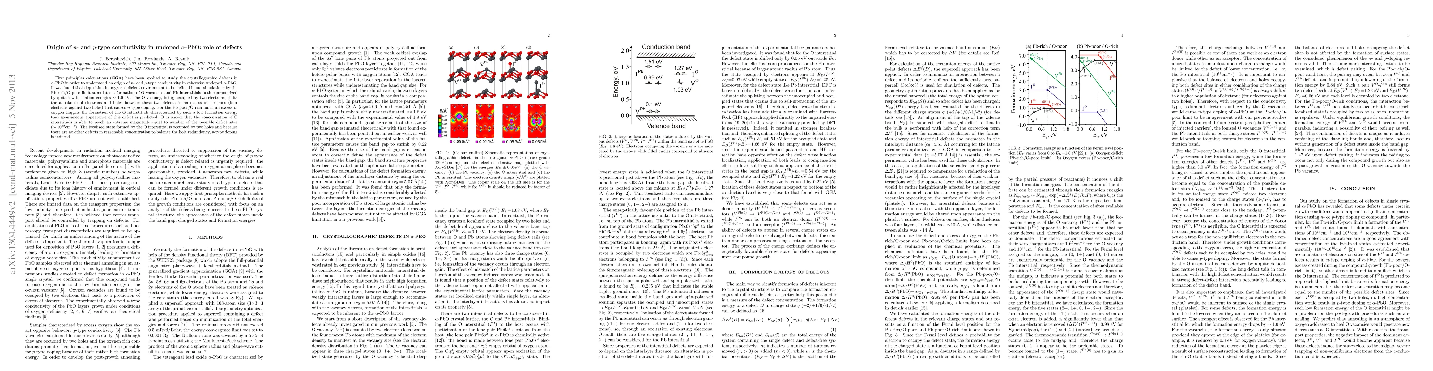 Researchers found that oxygen vacancies and interstitials in lead oxide can cause n-type and p-type conductivity, respectively, due to defects with low formation energies. This suggests a new mechanism for doping in undoped lead oxide materials.