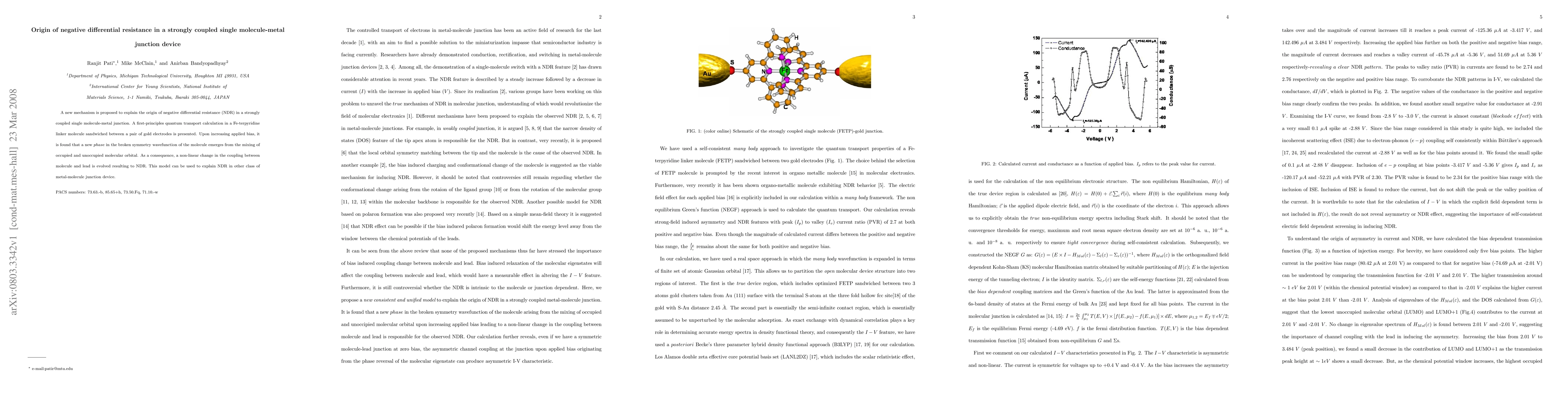 The paper proposes a new mechanism for negative differential resistance (NDR) in strongly coupled single molecule-metal junctions, demonstrating it through quantum transport calculations for a Fe-terpyridine molecule between gold electrodes. The NDR arises from a new phase in the molecule's wavefunction due to the mixing of occupied and unoccupied orbitals, leading to a non-linear change in molecule-lead coupling.