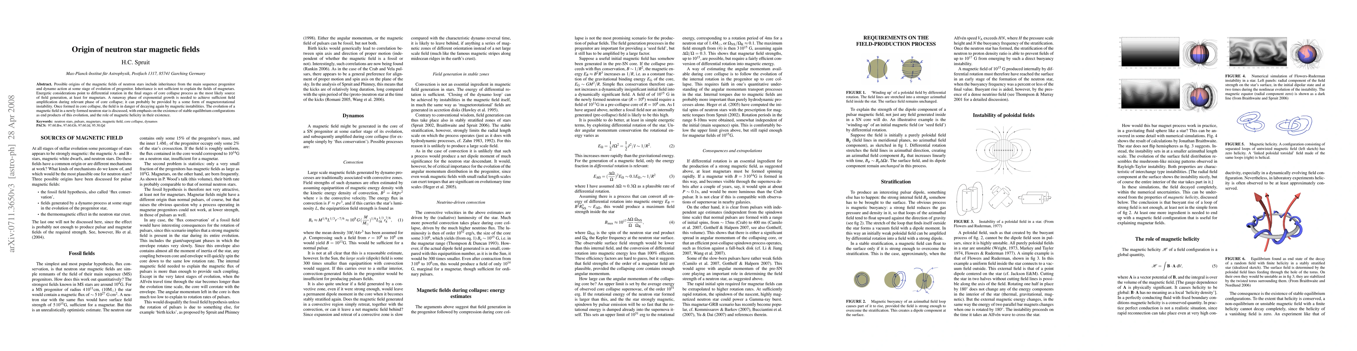 This paper explores the origins of neutron star magnetic fields, suggesting that differential rotation during core collapse is the most likely source, especially for magnetars. It discusses the potential for magnetic field amplification through magnetorotational instability and the role of magnetic helicity in stable equilibrium configurations.