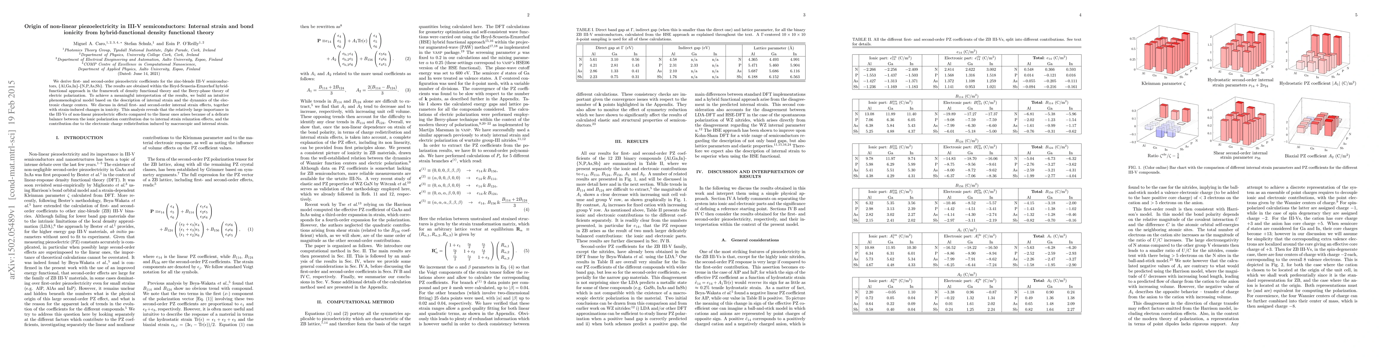 This paper investigates the origin of non-linear piezoelectricity in zinc-blende III-V semiconductors using hybrid-functional density functional theory, revealing that internal strain and bond ionicity play crucial roles. The study finds that non-linear effects are significant due to a balance between ionic polarization from strain relaxation and electronic charge redistribution.