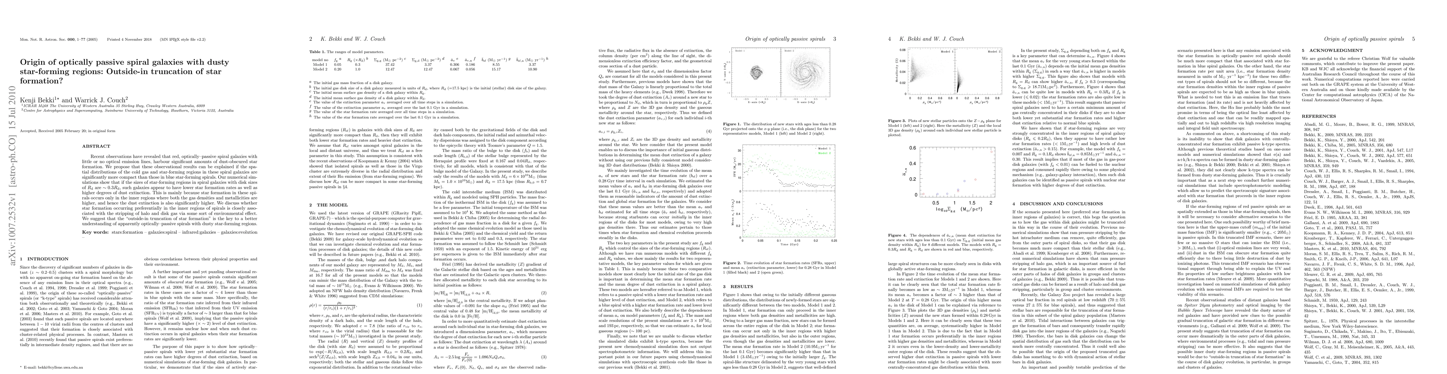 Recent observations have revealed that red, optically--passive spiral galaxies with little or no optical emission lines, harbour significant amounts of dust-obscured star formation. We propose that these observational results can be explained if the spatial distributions of the cold gas and star-forming regions in these spiral galaxies are significantly more compact than those in blue star-forming spirals. Our numerical simulations show that if the sizes of star-forming regions in spiral galaxies with disk sizes of R_d are ~ 0.3R_d, such galaxies appear to have lower star formation rates as well as higher degrees of dust extinction. This is mainly because star formation in these spirals occurs only in the inner regions where both the gas densities and metallicities are higher, and hence the dust extinction is also significantly higher. We discuss whether star formation occurring preferentially in the inner regions of spirals is closely associated with the stripping of halo and disk gas via some sort of environmental effect. We suggest that the "outside-in truncation of star formation" is the key to a better understanding of apparently optically--passive spirals with dusty star-forming regions.