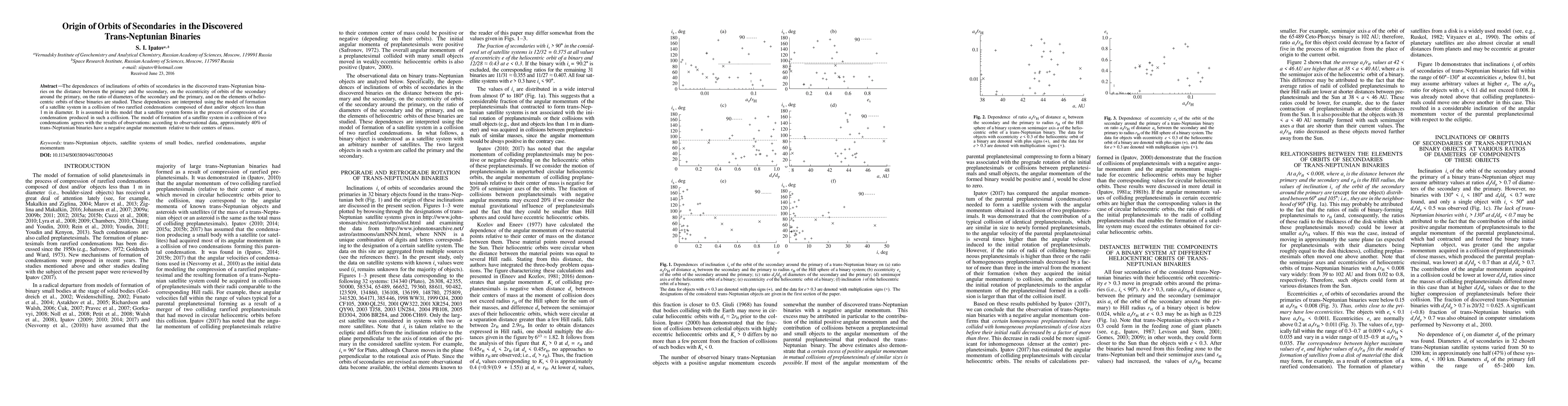 This paper investigates the factors influencing the orbital inclinations of secondaries in trans-Neptunian binaries, proposing a model where satellite systems form from collisions of dust and small objects, explaining the observed 40% of binaries with negative angular momentum.