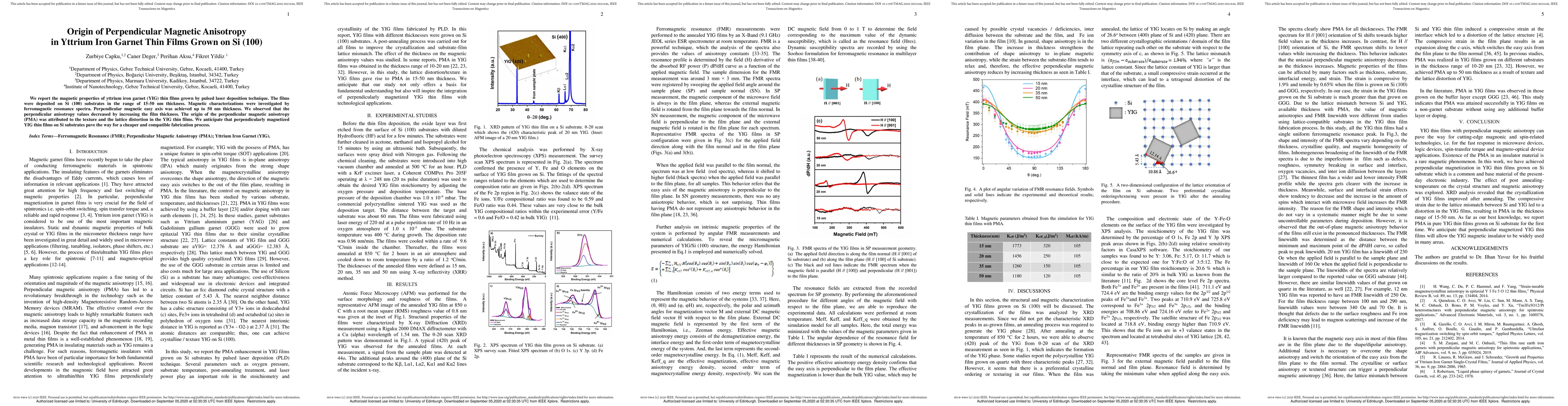 This paper investigates Yttrium Iron Garnet (YIG) thin films deposited on Si (100) substrates, finding perpendicular magnetic anisotropy attributed to film texture and lattice distortion. Perpendicular anisotropy decreases with increasing film thickness, suggesting potential for cheaper, compatible fabrication processes.
