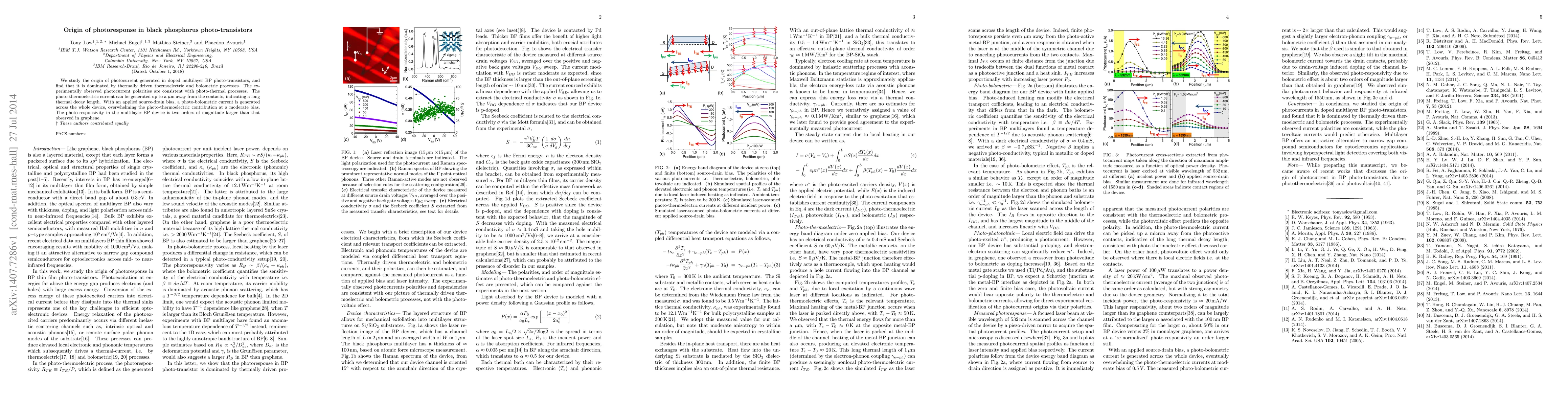 We study the origin of photocurrent generated in doped multilayer BP photo-transistors, and find that it is dominated by thermally driven thermoelectric and bolometric processes. The experimentally observed photocurrent polarities are consistent with photo-thermal processes. The photo-thermoelectric current can be generated up to a $\mu$m away from the contacts, indicating a long thermal decay length. With an applied source-drain bias, a photo-bolometric current is generated across the whole device, overwhelming the photo-thermoelectric contribution at a moderate bias. The photo-responsivity in the multilayer BP device is two orders of magnitude larger than that observed in graphene.