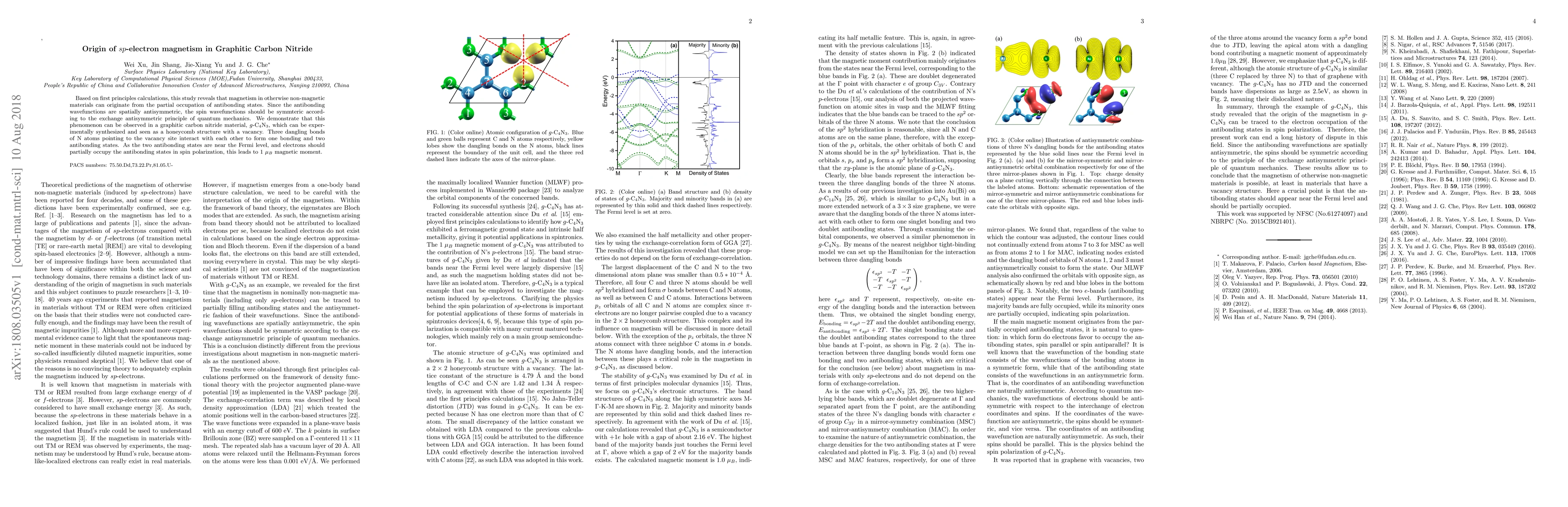 Graphitic carbon nitride materials exhibit magnetism due to partial occupation of antibonding states near the Fermi level, resulting in a magnetic moment of 1~µ_B.