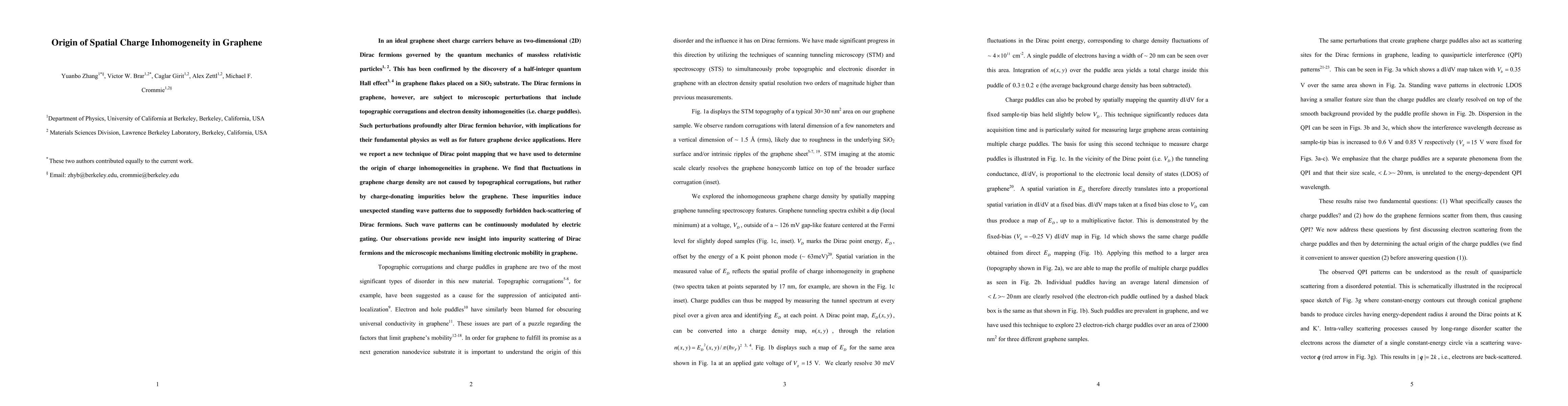 Researchers found that charge inhomogeneities in graphene are caused by impurities below the surface, not topographical corrugations, and can be modulated by electric gating.