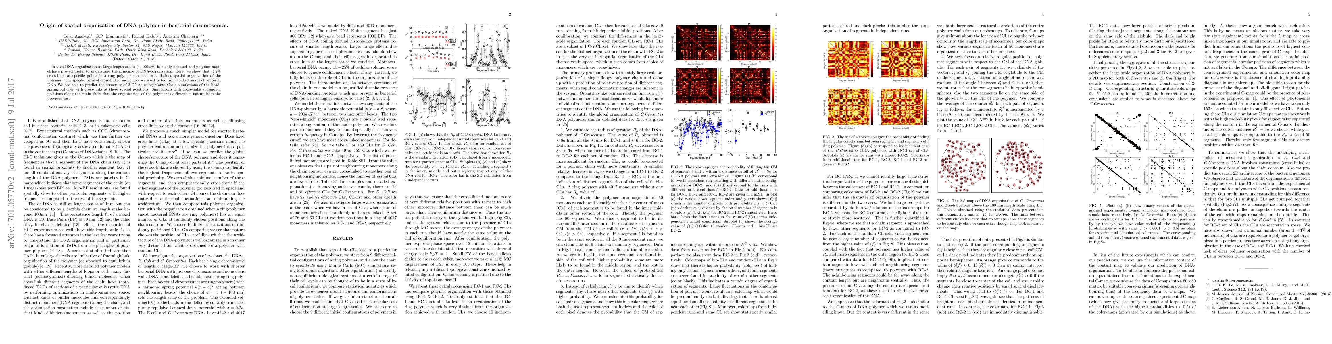 In-vivo DNA organization at large length scales ($\sim 100nm$) is highly debated and polymer models have proved useful to understand the principle of DNA-organization. Here, we show that $<2$% cross-links at specific points in a ring polymer can lead to a distinct spatial organization of the polymer. The specific pairs of cross-linked monomers were extracted from contact maps of bacterial DNA. We are able to predict the structure of 2 DNAs using Monte Carlo simulations of the bead-spring polymer with cross-links at these special positions. Simulations with cross-links at random positions along the chain show that the organization of the polymer is different in nature from the previous case.