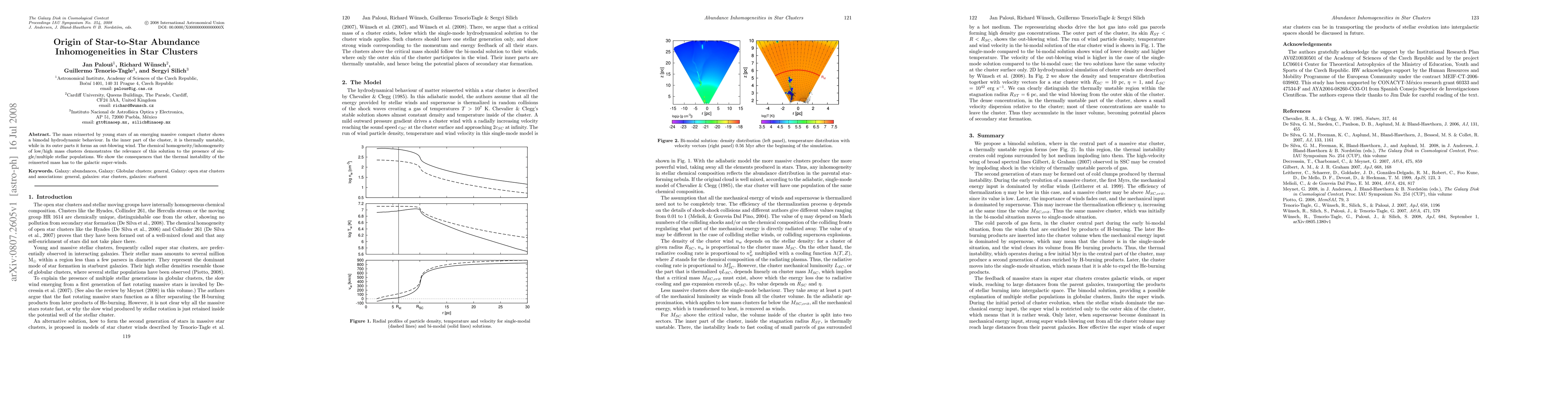 The mass reinserted by young stars of an emerging massive compact cluster shows a bimodal hydrodynamic behaviour. In the inner part of the cluster, it is thermally unstable, while in its outer parts it forms an out-blowing wind. The chemical homogeneity/inhomogeneity of low/high mass clusters demonstrates the relevance of this solution to the presence of single/multiple stellar populations. We show the consequences that the thermal instability of the reinserted mass has to the galactic super-winds.