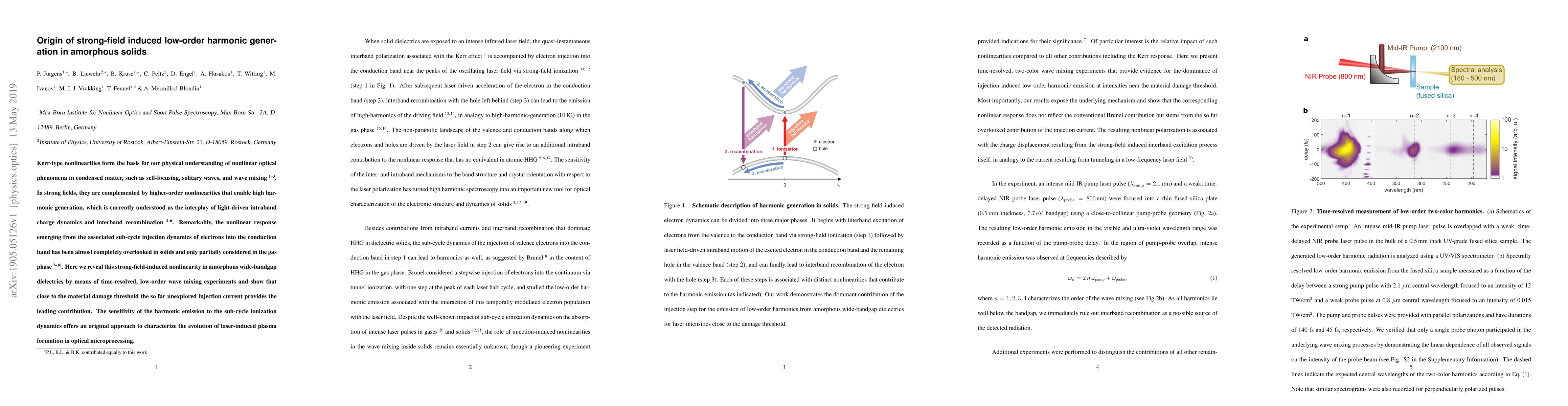 This paper investigates the origin of strong-field induced low-order harmonic generation in amorphous wide-bandgap dielectrics, revealing that sub-cycle injection dynamics of electrons into the conduction band play a crucial role. The findings provide insight into the nonlinear response and laser-induced plasma formation in optical microprocessing.