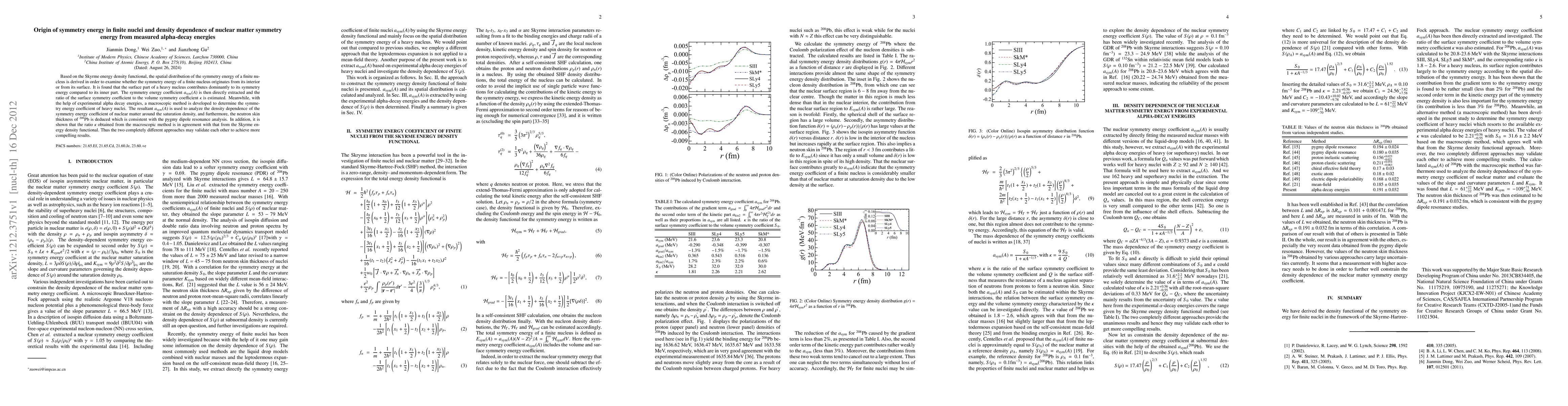 This paper investigates the origin of symmetry energy in finite nuclei using the Skyrme energy density functional, finding that the surface contributes more to symmetry energy than the interior. It also develops a macroscopic method using alpha decay energies to determine the symmetry energy coefficient, which is used to analyze the density dependence of nuclear matter symmetry energy and deduces the neutron skin thickness of $^{208}\text{Pb}$, consistent with other analyses.