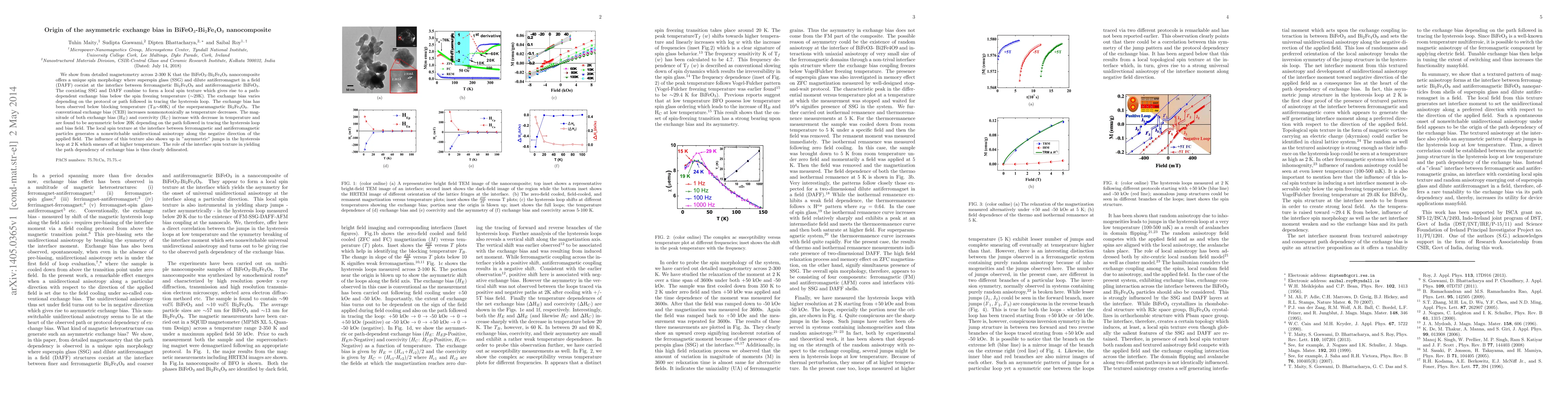 This research paper investigates the asymmetric exchange bias in BiFeO$_3$-Bi$_2$Fe$_4$O$_9$ nanocomposite, revealing a unique spin morphology where superspin glass and dilute antiferromagnet coexist at the interface. The local spin texture at the interface generates a path-dependent exchange bias below 29K, with asymmetric behavior observed below 20K depending on the hysteresis loop tracing path.