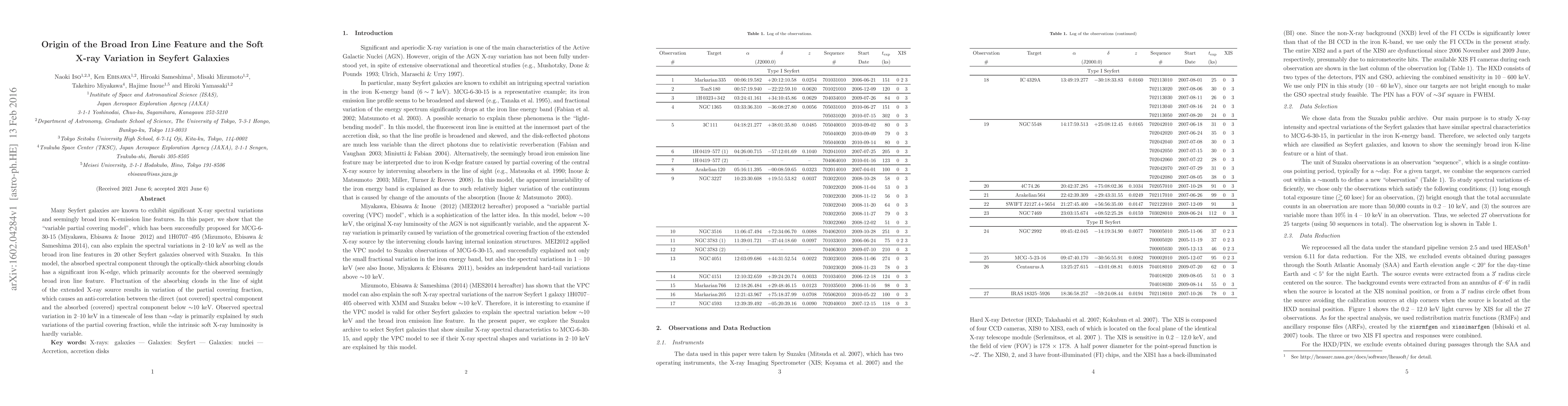 Many Seyfert galaxies are known to exhibit significant X-ray spectral variations and seemingly broad iron K-emission line features. In this paper, we show that the "variable partial covering model", which has been successfully proposed for MCG-6.30-15 (Miyakawa, Ebisawa & Inoue 2012) and 1H0707.495 (Mizumoto, Ebisawa & Sameshima 2014), can also explain the spectral variations in 2-10 keV as well as the broad iron line features in 20 other Seyfert galaxies observed with Suzaku. In this model, the absorbed spectral component through the optically-thick absorbing clouds has a significant iron K-edge, which primarily accounts for the observed seemingly broad iron line feature. Fluctuation of the absorbing clouds in the line of sight of the extended X-ray source results in variation of the partial covering fraction, which causes an anti-correlation between the direct (not covered) spectral component and the absorbed (covered) spectral component below ~10 keV. Observed spectral variation in 2-10 keV in a timescale of less than ~day is primarily explained by such variations of the partial covering fraction, while the intrinsic soft X-ray luminosity is hardly variable.