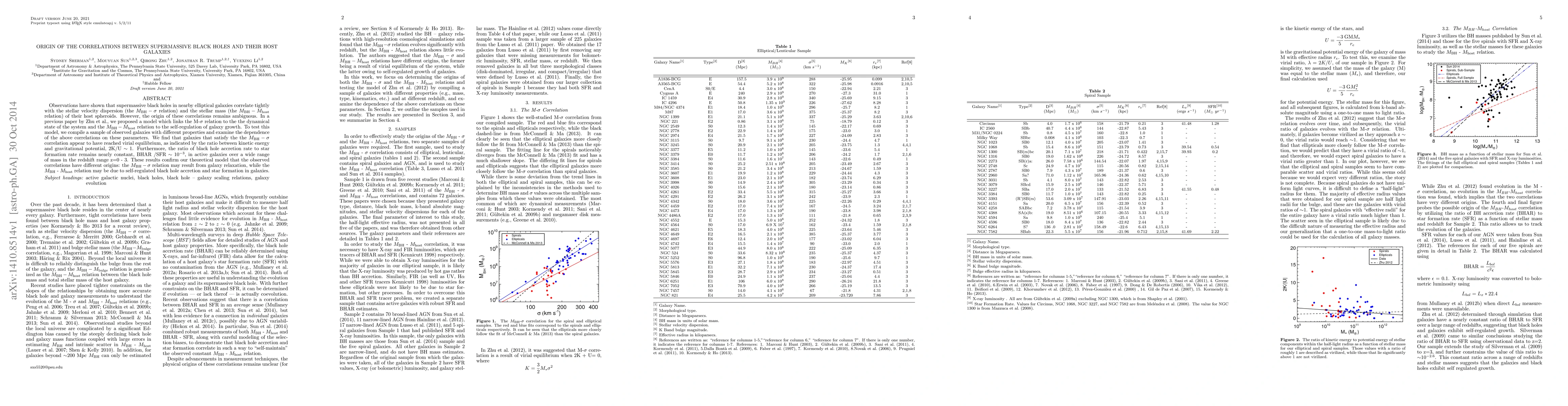 This paper investigates the origins of correlations between supermassive black holes and their host galaxies, confirming that the $\MBH - \sigma$ relation likely arises from galaxy relaxation into virial equilibrium, while the $\MBH - \Mhost$ relation is due to self-regulated black hole accretion and star formation processes.