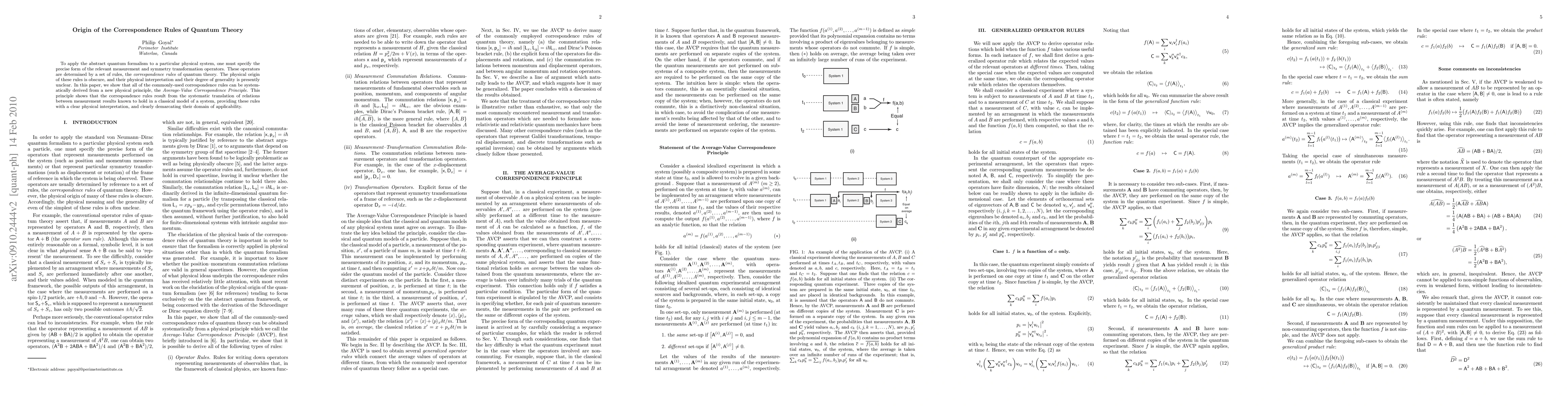 To apply the abstract quantum formalism to a particular physical system, one must specify the precise form of the relevant measurement and symmetry transformation operators. These operators are determined by a set of rules, the correspondence rules of quantum theory. The physical origin of these rules is obscure, and their physical interpretation and their degree of generality is presently unclear. In this paper, we show that all of the commonly-used correspondence rules can be systematically derived from a new physical principle, the Average-Value Correspondence Principle. This principle shows that the correspondence rules result from the systematic translation of relations between measurement results known to hold in a classical model of a system, providing these rules with a clear physical interpretation, and clearly demarcating their domain of applicability.