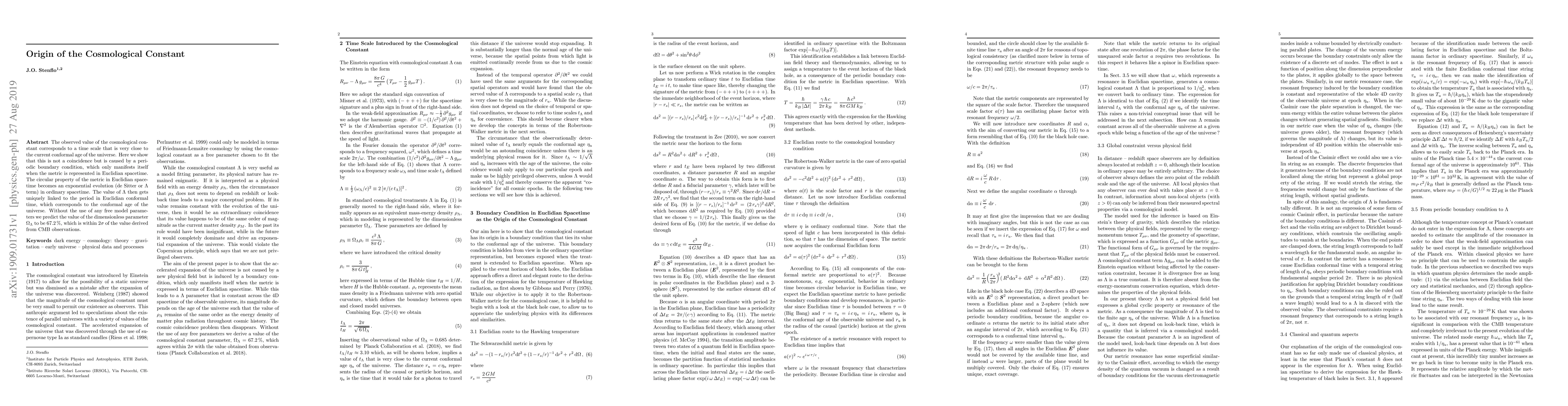 Researchers show that the cosmological constant's observed value is linked to a periodic boundary condition in Euclidean spacetime, predicting a dimensionless parameter $eta$ of 67.2% within 2$ au$ of CMB observations.
