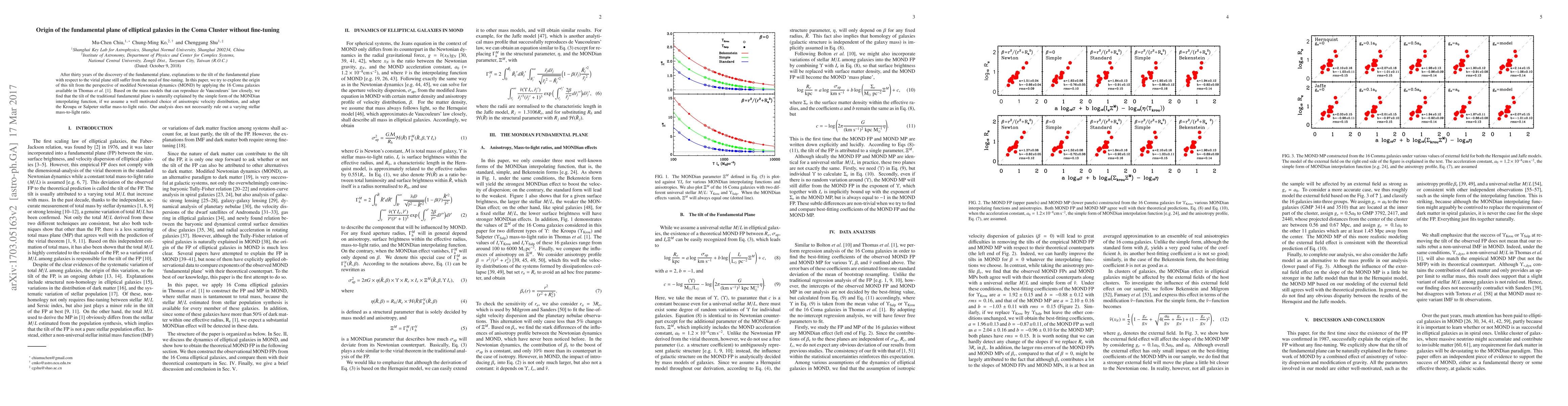 The origin of the fundamental plane tilt in elliptical galaxies is naturally explained by MOND without fine-tuning, based on 16 Coma galaxy mass models that reproduce de Vaucouleurs' law closely.