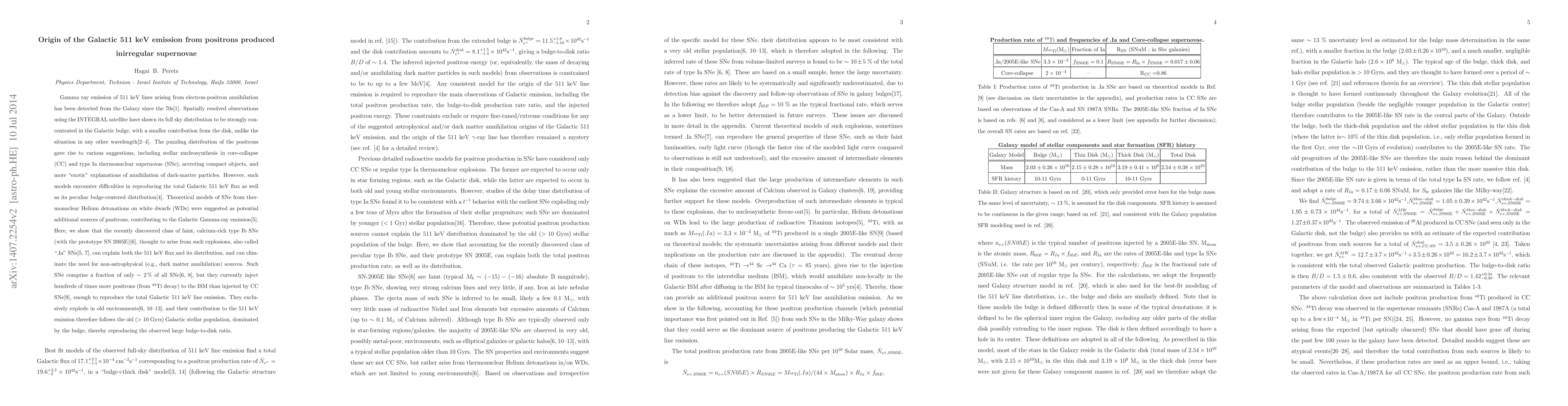 This paper demonstrates that faint, calcium-rich type Ib supernovae, termed ".Ia" SNe, can account for the Galactic 511 keV gamma-ray emission from positron annihilation, explaining both the total flux and its bulge-centered distribution without requiring dark matter annihilation. These rare supernovae inject significantly more positrons than core-collapse supernovae, aligning with the observed bulge-dominated emission.