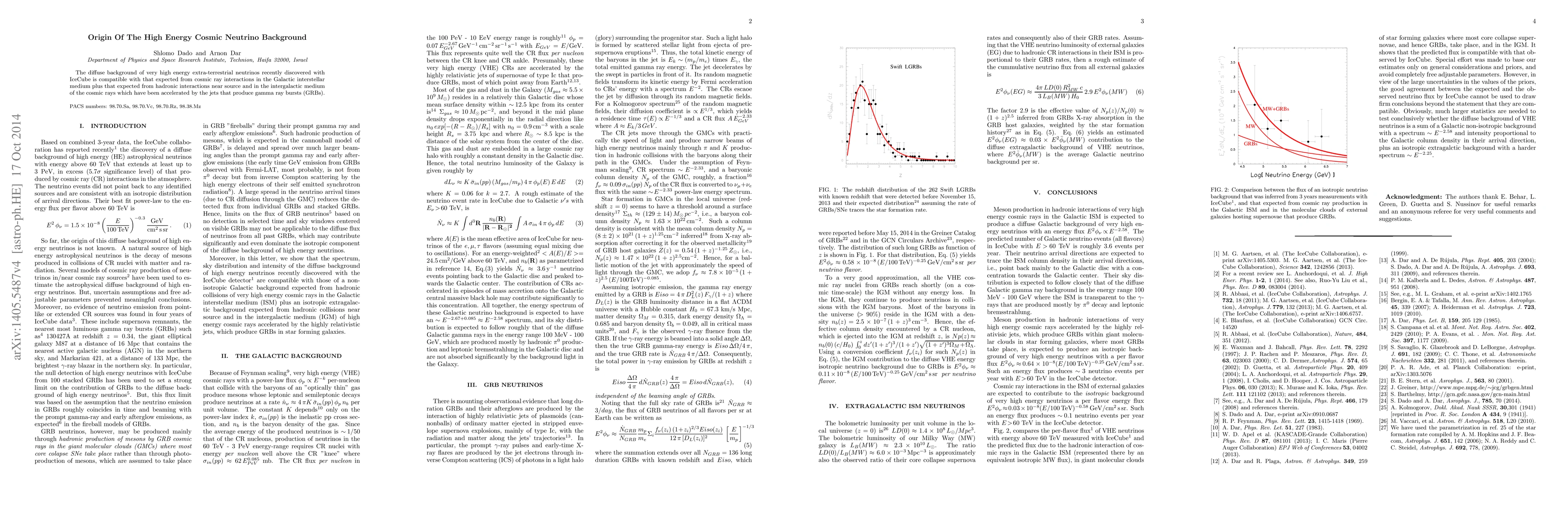 The diffuse background of very high energy extra-terrestrial neutrinos recently discovered with IceCube is compatible with that expected from cosmic ray interactions in the Galactic interstellar medium plus that expected from hadronic interactions near source and in the intergalactic medium of the cosmic rays which have been accelerated by the jets that produce gamma ray bursts (GRBs).