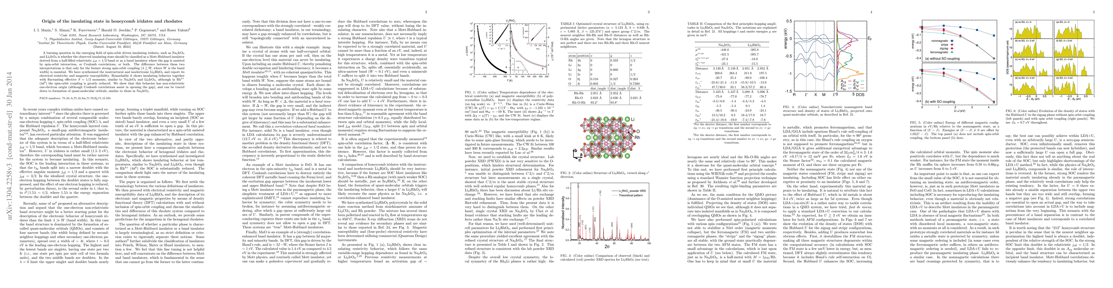 A burning question in the emerging field of spin-orbit driven insulating iridates, such as Na2IrO3 and Li2IrO3 is whether the observed insulating state should be classified as a Mott-Hubbard insulator derived from a half-filled relativistic j_eff=1/2 band or as a band insulator where the gap is assisted by spin-orbit interaction, or Coulomb correlations, or both. The difference between these two interpretations is that only for the former, strong spin-orbit coupling (lambda >~ W, where W is the band width) is essential. We have synthesized the isostructural and isoelectronic Li2RhO3 and report its electrical resistivity and magnetic susceptibility. Remarkably it shows insulating behavior together with fluctuating effective S=1/2 moments, similar to Na2IrO3 and Li2IrO3, although in Rh4+ (4d5) the spin-orbit coupling is greatly reduced. We show that this behavior has non-relativistic one-electron origin (although Coulomb correlations assist in opening the gap), and can be traced down to formation of quasi-molecular orbitals, similar to those in Na2IrO3.