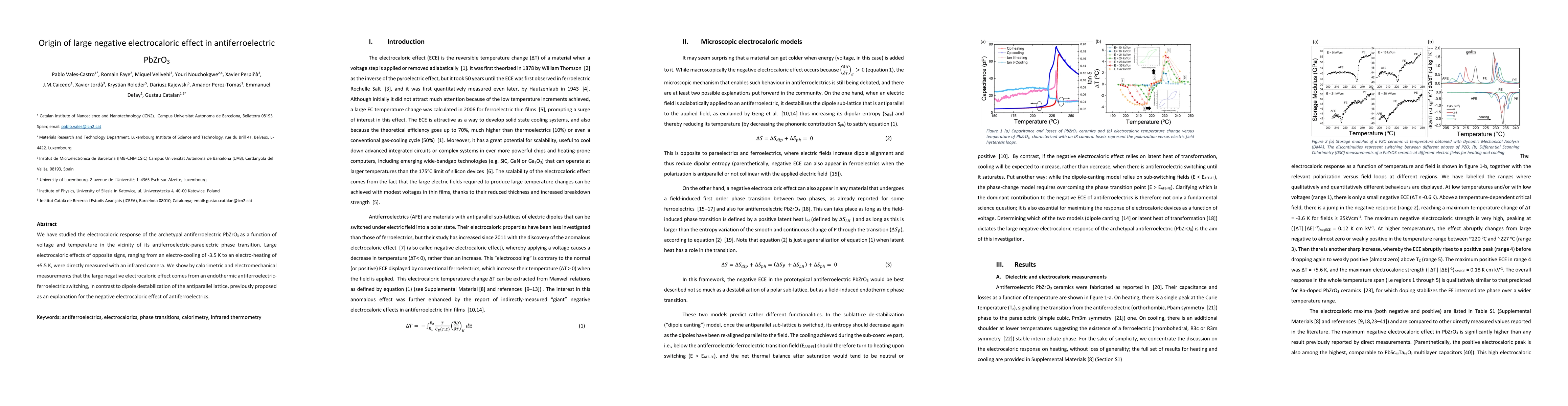 The study reveals large negative electrocaloric effects in PbZrO3, ranging from -3.5 K to +5.5 K, attributed to endothermic antiferroelectric-ferroelectric phase switching rather than dipole destabilization. This finding redefines the origin of the large negative electrocaloric effect in antiferroelectric materials.