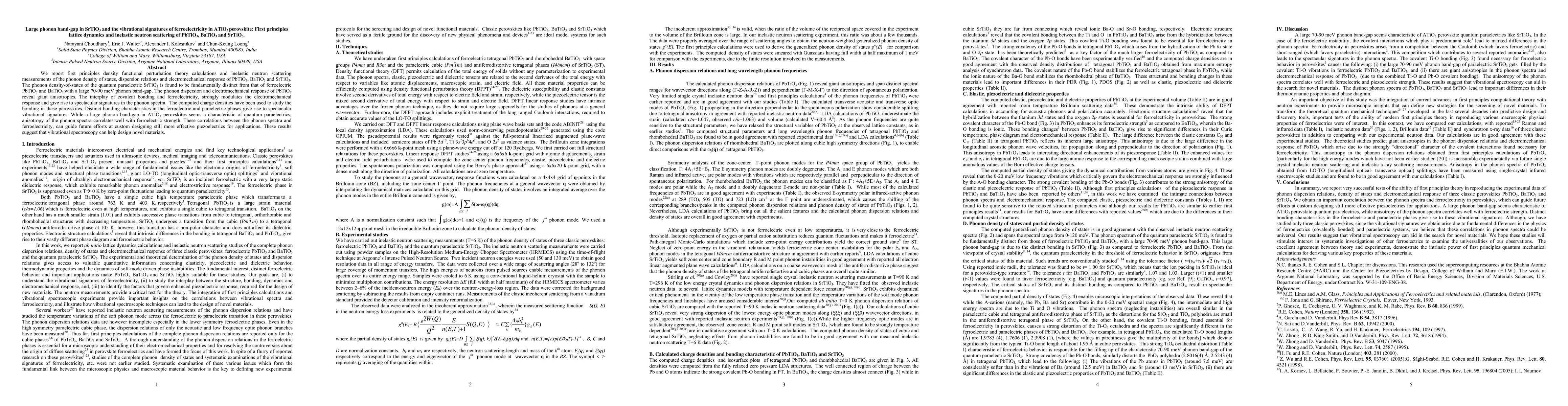 This paper uses first principles calculations and neutron scattering to investigate the phonon properties of ATiO3 perovskites, finding a large phonon band-gap in SrTiO3 and significant phonon anisotropy in ferroelectric PbTiO3 and BaTiO3. These findings suggest that phonon spectra can guide the design of advanced piezoelectric materials.