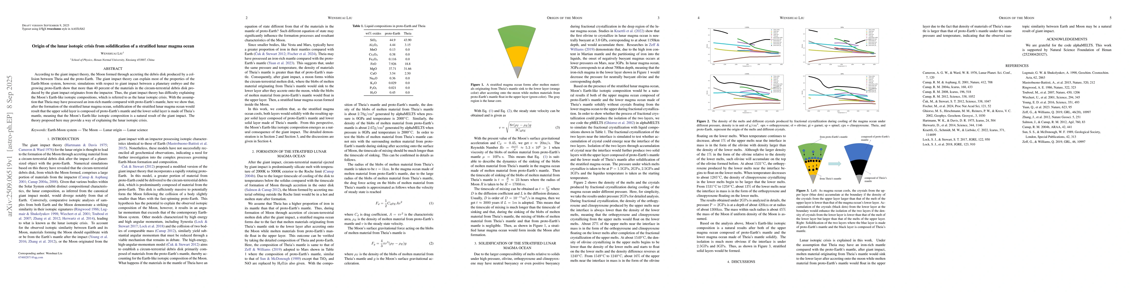 According to the giant impact theory, the Moon formed through accreting the debris disk produced by a collision between Theia and the proto-Earth. The giant impact theory can explain most of the properties of the Earth-Moon system, however, simulations with respect to giant impact between a planetary embryo and the growing proto-Earth show that more than 40 percent of the materials in the circum-terrestrial debris disk produced by the giant impact originates from the impactor. Thus, the giant impact theory has difficulty explaining the Moon's Earth-like isotopic compositions, which is referred to as the lunar isotopic crisis. With the assumption that Theia may have possessed an iron-rich mantle compared with proto-Earth's mantle, here we show that, after the formation of the stratified lunar magma ocean, solidification of the stratified lunar magma ocean would result that the upper solid layer is composed of proto-Earth's mantle and the lower solid layer is made of Theia's mantle, meaning that the Moon's Earth-like isotopic composition is a natural result of the giant impact. The theory proposed here may provide a way of explaining the lunar isotopic crisis.