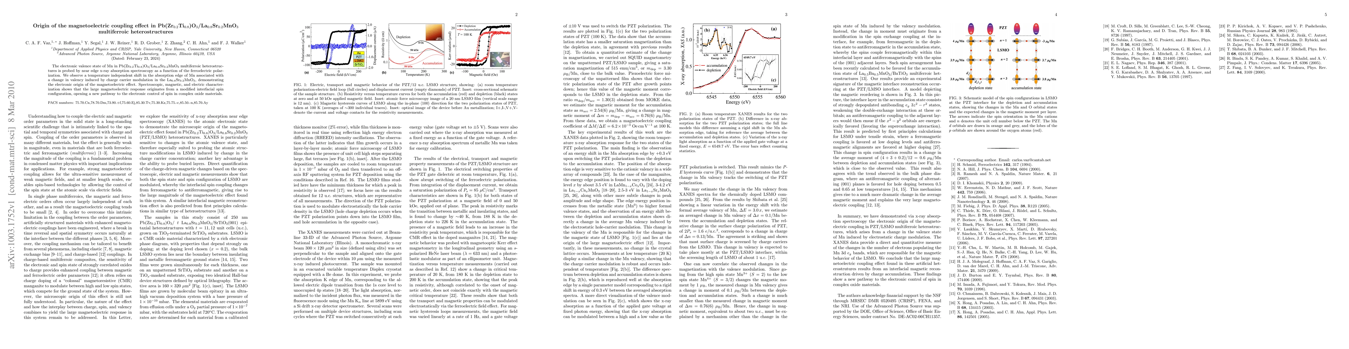 Summary: Near edge x-ray absorption spectroscopy reveals a temperature-independent shift in Mn valence state in Pb(Zr0.2Ti0.8)O3/La0.8Sr0.2MnO3 multiferroic heterostructures, indicating an electronic origin of magnetoelectric coupling via charge modulation. The large magnetoelectric response stems from a modified interfacial spin configuration.