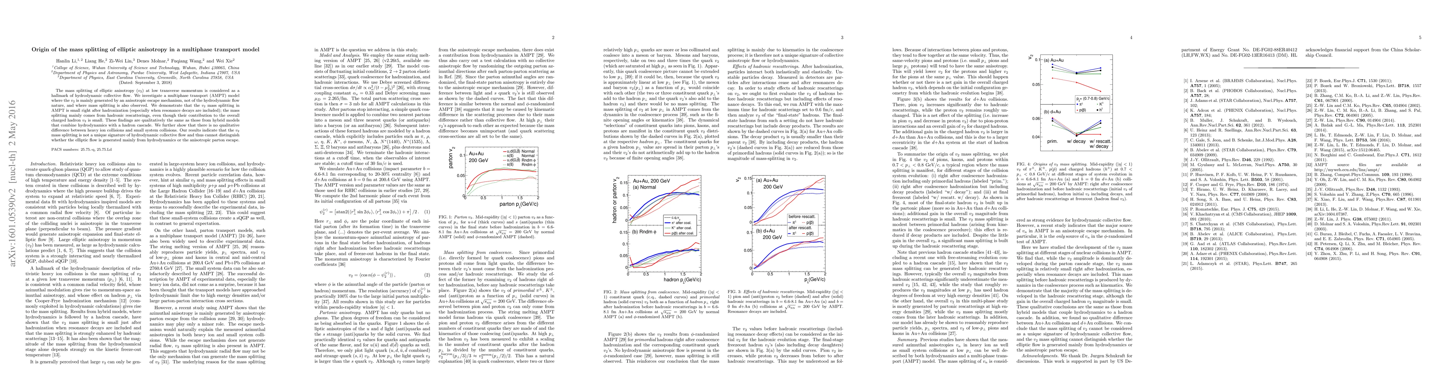The study investigates the mass splitting of elliptic anisotropy ($v_2$) in a multiphase transport model, finding that it arises mainly from hadronic rescatterings rather than hydrodynamic flow. The results suggest that $v_2$ mass splitting is not exclusive to hydrodynamic collective flow, challenging its use as a unique signature of hydrodynamics.