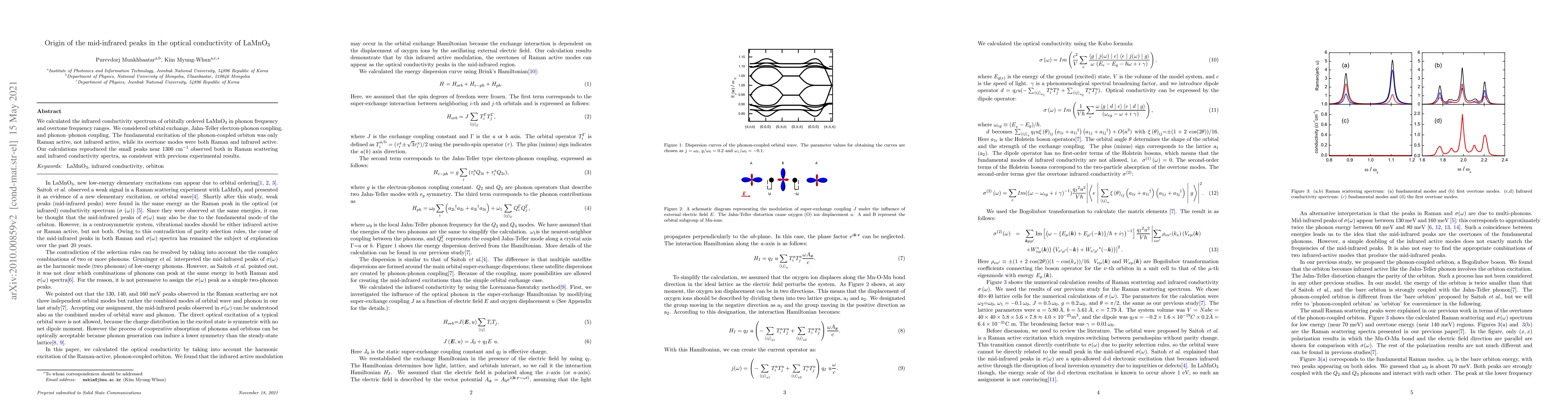 We calculated the infrared conductivity spectrum of orbitally ordered LaMnO$_3$ in phonon frequency and overtone frequency ranges. We considered orbital exchange, Jahn-Teller electron-phonon coupling, and phonon--phonon coupling. The fundamental excitation of the phonon-coupled orbiton was only Raman active, not infrared active, while its overtone modes were both Raman and infrared active. Our calculations reproduced the small peaks near 1300 cm$^{-1}$ observed both in Raman scattering and infrared conductivity spectra, as consistent with previous experimental results.