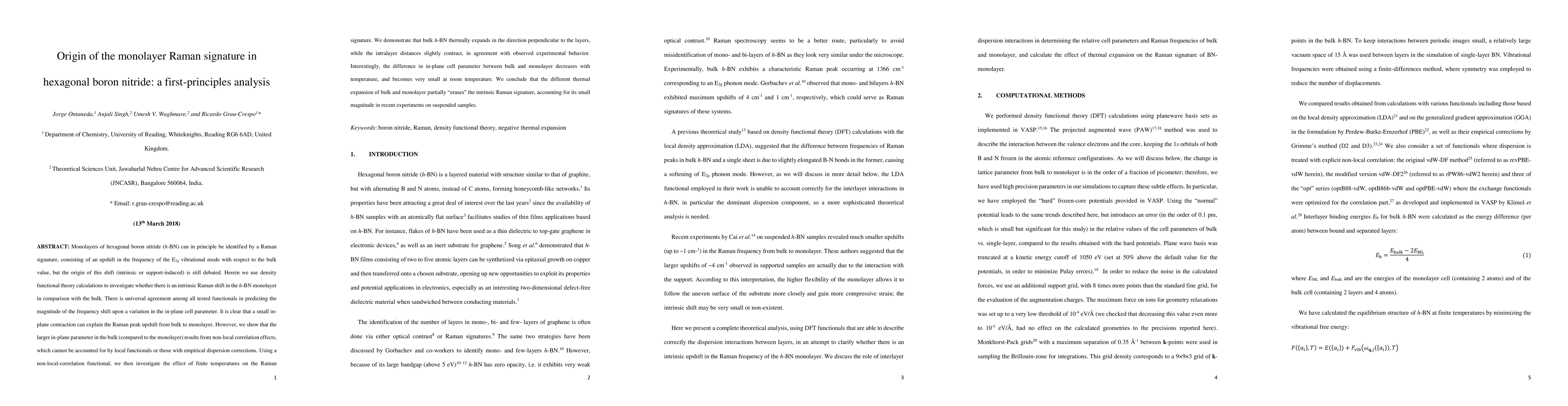 Monolayers of hexagonal boron nitride (h-BN) can in principle be identified by a Raman signature, consisting of an upshift in the frequency of the E2g vibrational mode with respect to the bulk value, but the origin of this shift (intrinsic or support-induced) is still debated. Herein we use density functional theory calculations to investigate whether there is an intrinsic Raman shift in the h-BN monolayer in comparison with the bulk. There is universal agreement among all tested functionals in predicting the magnitude of the frequency shift upon a variation in the in-plane cell parameter. It is clear that a small in-plane contraction can explain the Raman peak upshift from bulk to monolayer. However, we show that the larger in-plane parameter in the bulk (compared to the monolayer) results from non-local correlation effects, which cannot be accounted for by local functionals or those with empirical dispersion corrections. Using a non-local-correlation functional, we then investigate the effect of finite temperatures on the Raman signature. We demonstrate that bulk h-BN thermally expands in the direction perpendicular to the layers, while the intralayer distances slightly contract, in agreement with observed experimental behavior. Interestingly, the difference in in-plane cell parameter between bulk and monolayer decreases with temperature, and becomes very small at room temperature. We conclude that the different thermal expansion of bulk and monolayer partially "erases" the intrinsic Raman signature, accounting for its small magnitude in recent experiments on suspended samples.