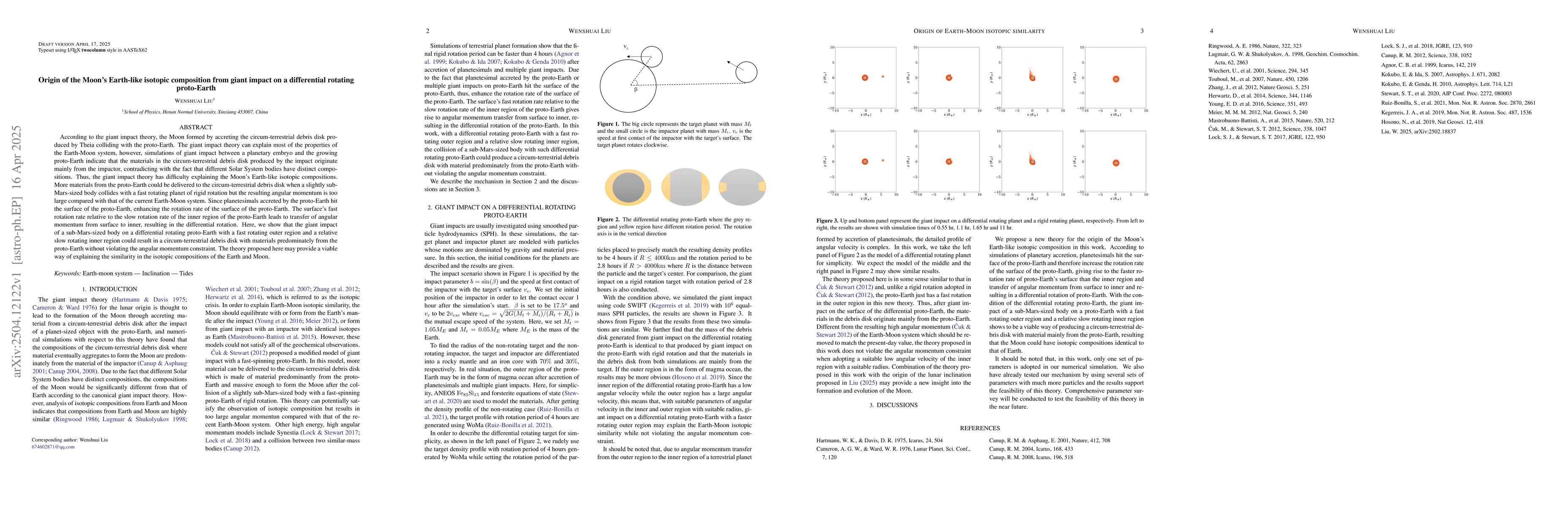 The paper introduces a modified giant impact model that incorporates differential rotation in the proto-Earth, providing a new perspective on the Earth-Moon isotopic similarity problem.