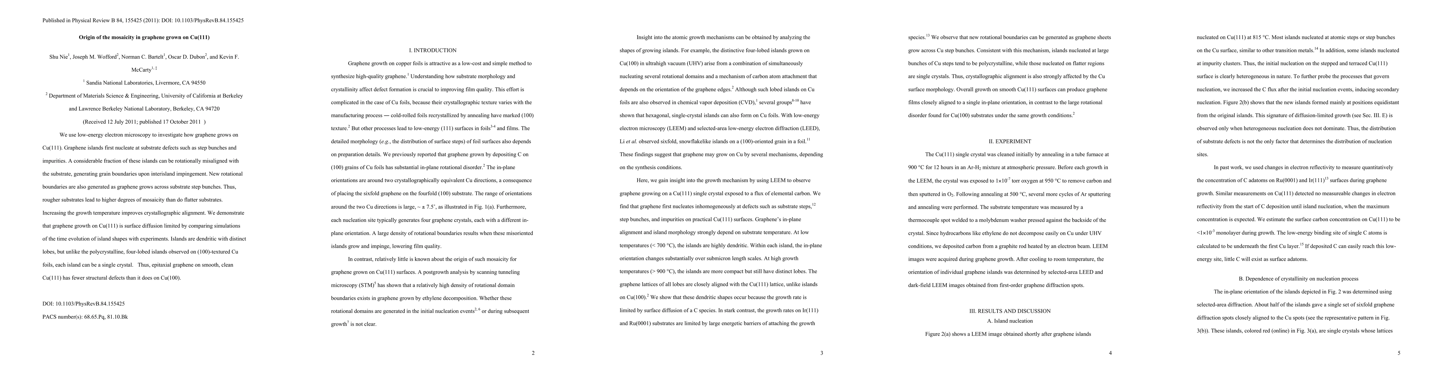 Understanding the origin of mosaicity in graphene grown on Cu(111) is crucial for optimizing epitaxial graphene quality, which has applications in electronics and nanotechnology.
