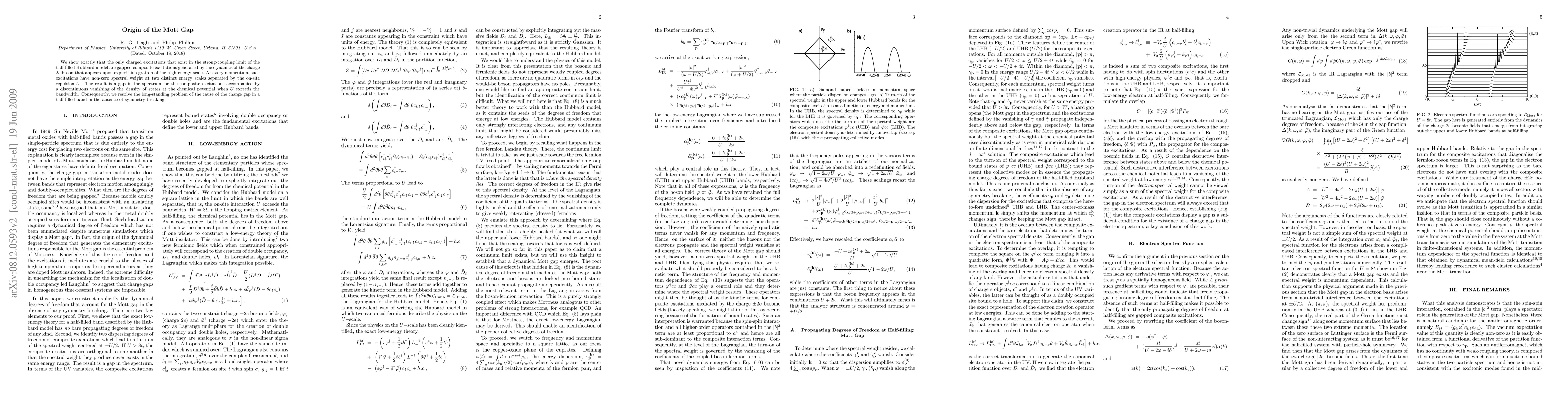 We show exactly that the only charged excitations that exist in the strong-coupling limit of the half-filled Hubbard model are gapped composite excitations generated by the dynamics of the charge $2e$ boson that appears upon explicit integration of the high-energy scale. At every momentum, such excitations have non-zero spectral weight at two distinct energy scales separated by the on-site repulsion $U$. The result is a gap in the spectrum for the composite excitations accompanied by a discontinuous vanishing of the density of states at the chemical potential when $U$ exceeds the bandwidth. Consequently, we resolve the long-standing problem of the cause of the charge gap in a half-filled band in the absence of symmetry breaking.