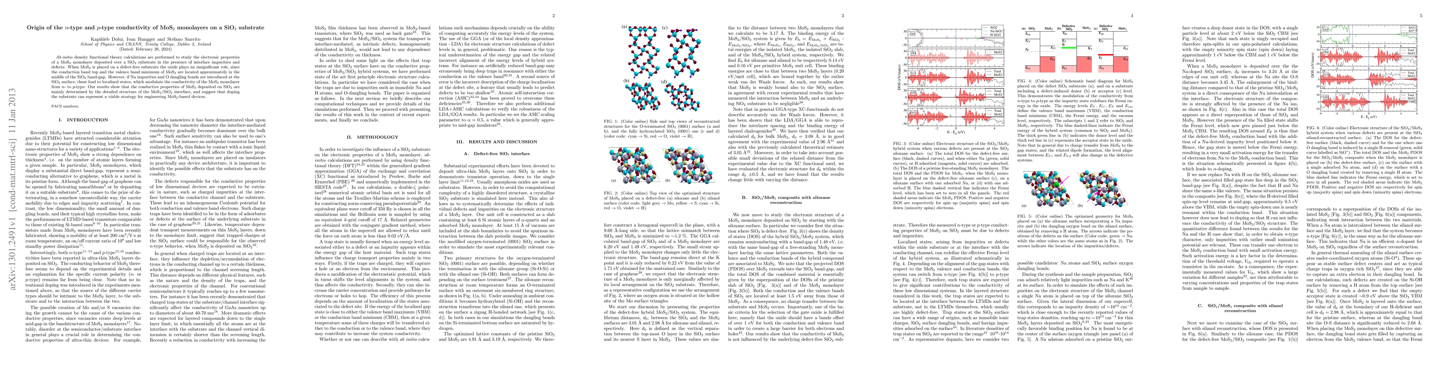 This study uses ab-initio density functional theory to investigate the electronic properties of MoS2 monolayers on SiO2 substrates, revealing that interface impurities and defects, such as Na and O dangling bonds, can shift MoS2 conductivity from n-type to p-type. The findings suggest that substrate doping could be a key method for engineering MoS2-based devices.