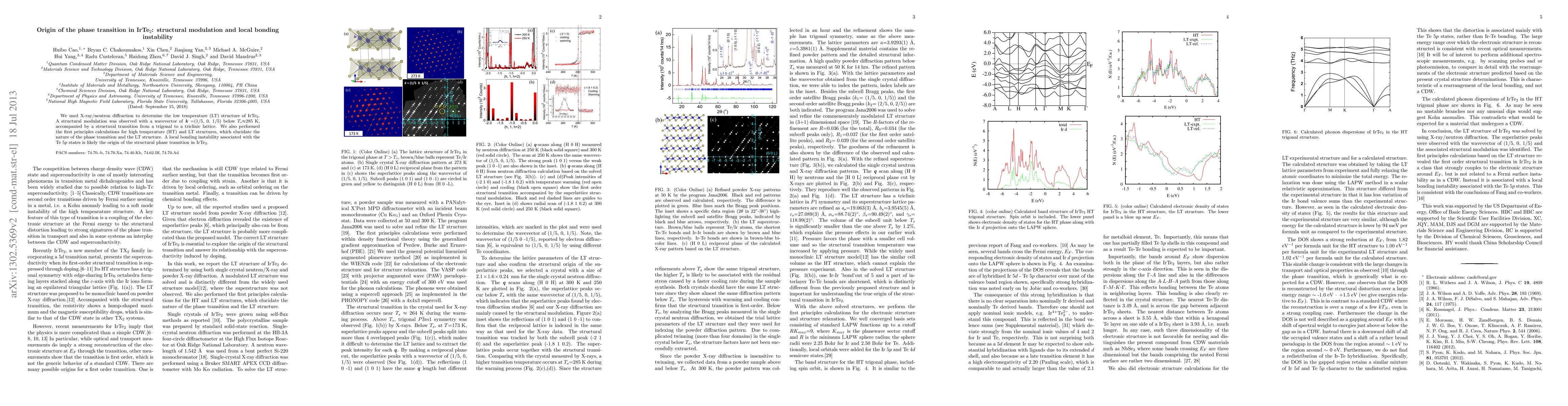 We used X-ray/neutron diffraction to determine the low temperature (LT) structure of IrTe2. A structural modulation was observed with a wavevector of k =(1/5, 0, 1/5) below Ts?285 K, accompanied by a structural transition from a trigonal to a triclinic lattice. We also performed the first principles calculations for high temperature (HT) and LT structures, which elucidate the nature of the phase transition and the LT structure. A local bonding instability associated with the Te 5p states is likely the origin of the structural phase transition in IrTe2.
