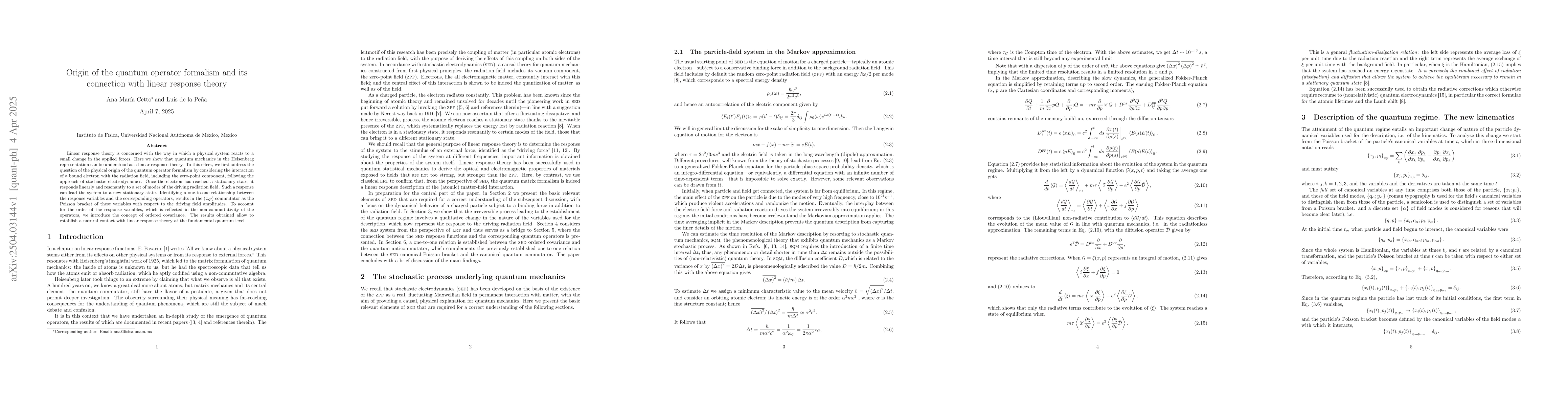 The paper presents a novel perspective on quantum mechanics, viewing it through the lens of linear response theory, and introduces the concept of ordered covariance to handle non-commutativity in quantum operator responses.