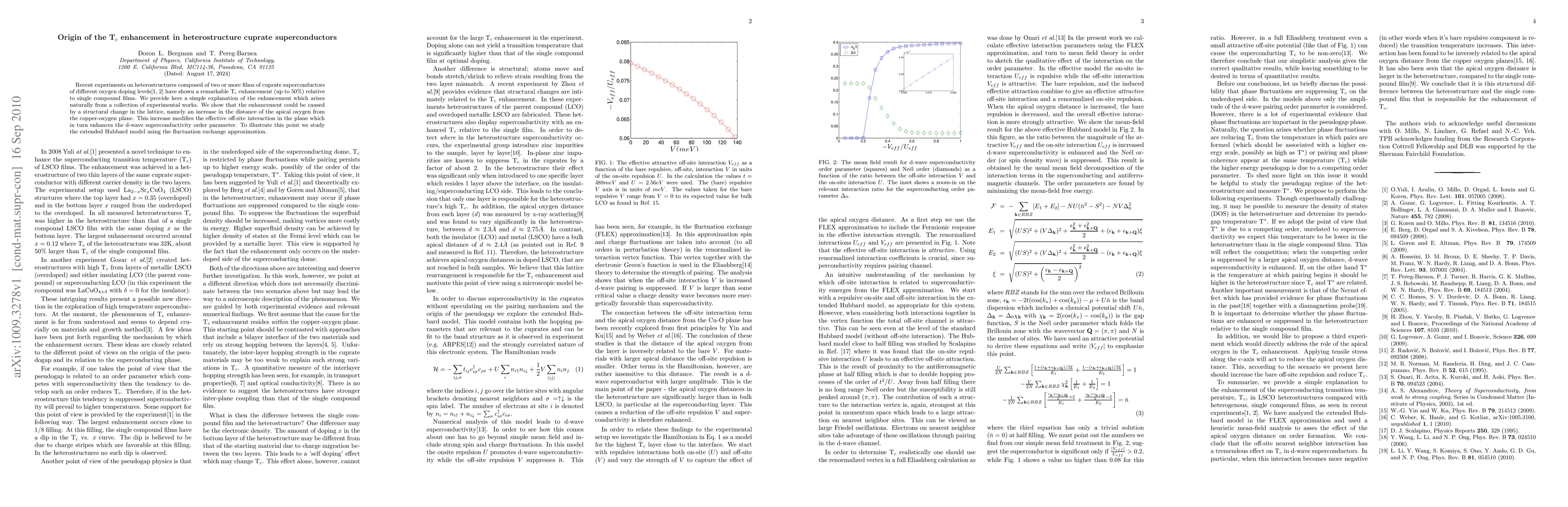Recent experiments on heterostructures composed of two or more films of cuprate superconductors of different oxygen doping levels\cite{Yuli,Gozar} have shown a remarkable T$_c$ enhancement (up to 50%) relative to single compound films. We provide here a simple explanation of the enhancement which arises naturally from a collection of experimental works. We show that the enhancement could be caused by a structural change in the lattice, namely an increase in the distance of the apical oxygen from the copper-oxygen plane. This increase modifies the effective off-site interaction in the plane which in turn enhances the d-wave superconductivity order parameter. To illustrate this point we study the extended Hubbard model using the fluctuation exchange approximation.