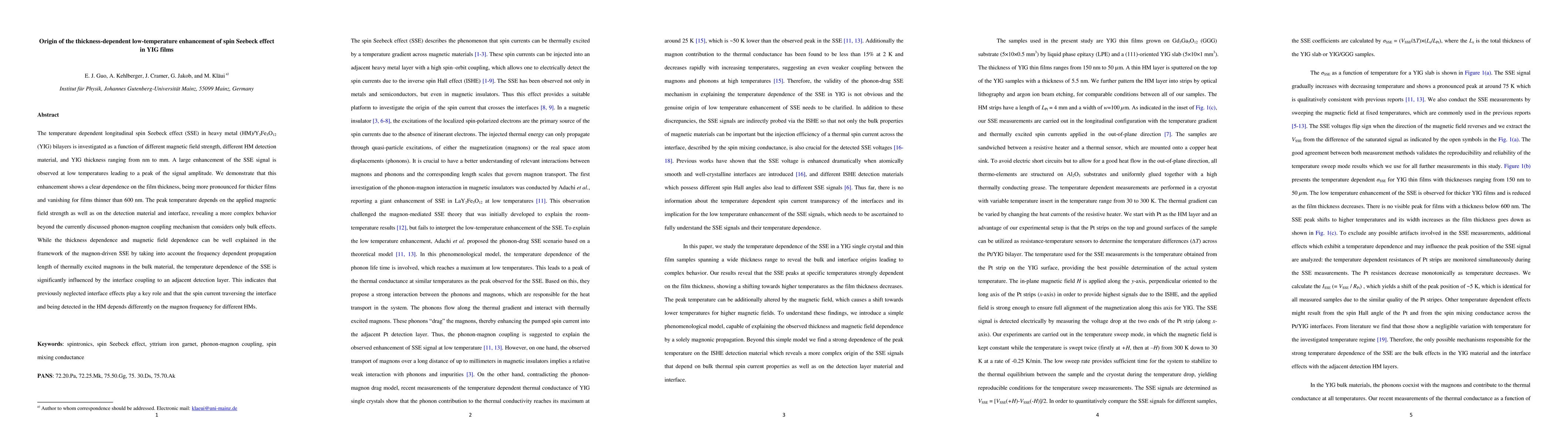 The temperature dependent longitudinal spin Seebeck effect (SSE) in heavy metal (HM)/ Y3Fe5O12 (YIG) bilayers is investigated as a function of different magnetic field strength, different HM detection material, and YIG thickness ranging from nm to mm. A large enhancement of the SSE signal is observed at low temperatures leading to a peak of the signal amplitude. We demonstrate that this enhancement shows a clear dependence on the film thickness, being more pronounced for thicker films and vanishing for films thinner than 600 nm. The peak temperature depends on the applied magnetic field strength as well as on the detection material and interface, revealing a more complex behavior beyond the currently discussed phonon-magnon coupling mechanism that considers only bulk effects. While the thickness dependence and magnetic field dependence can be well explained in the framework of the magnon-driven SSE by taking into account the frequency dependent propagation length of thermally excited magnons in the bulk material, the temperature dependence of the SSE is significantly influenced by the interface coupling to an adjacent detection layer. This indicates that previously neglected interface effects play a key role and that the spin current traversing the interface and being detected in the HM depends differently on the magnon frequency for different HMs.