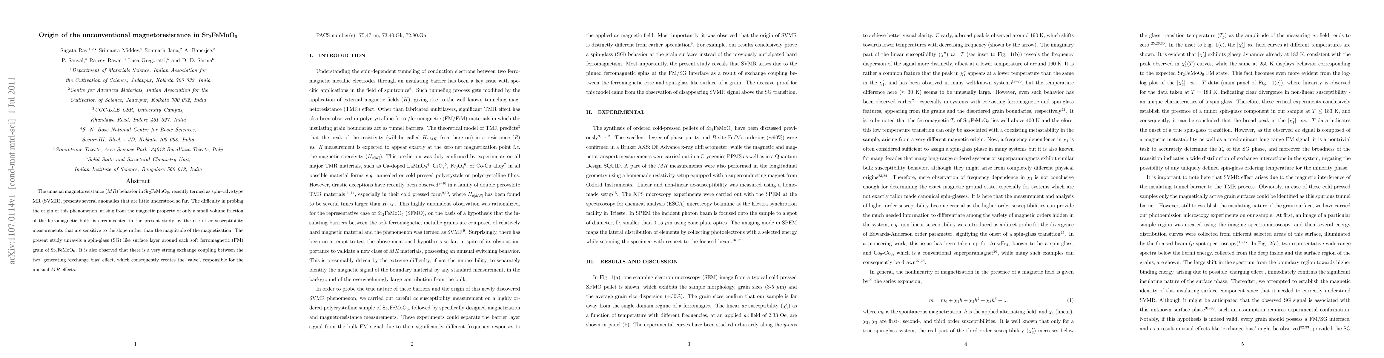 The unusual magnetoresistance (MR) behavior in Sr2FeMoO6, recently termed as spin-valve type MR (SVMR), presents several anomalies that are little understood so far. The difficulty in probing the origin of this phenomenon, arising from the magnetic property of only a small volume fraction of the ferromagnetic bulk, is circumvented in the present study by the use of ac susceptibility measurements that are sensitive to the slope rather than the magnitude of the magnetization. The present study unravels a spin-glass (SG) like surface layer around each soft ferromagnetic (FM) grain of Sr2FeMoO6. It is also observed that there is a very strong exchange coupling between the two, generating `exchange bias' effect, which consequently creates the `valve', responsible for the unusual MR effects.