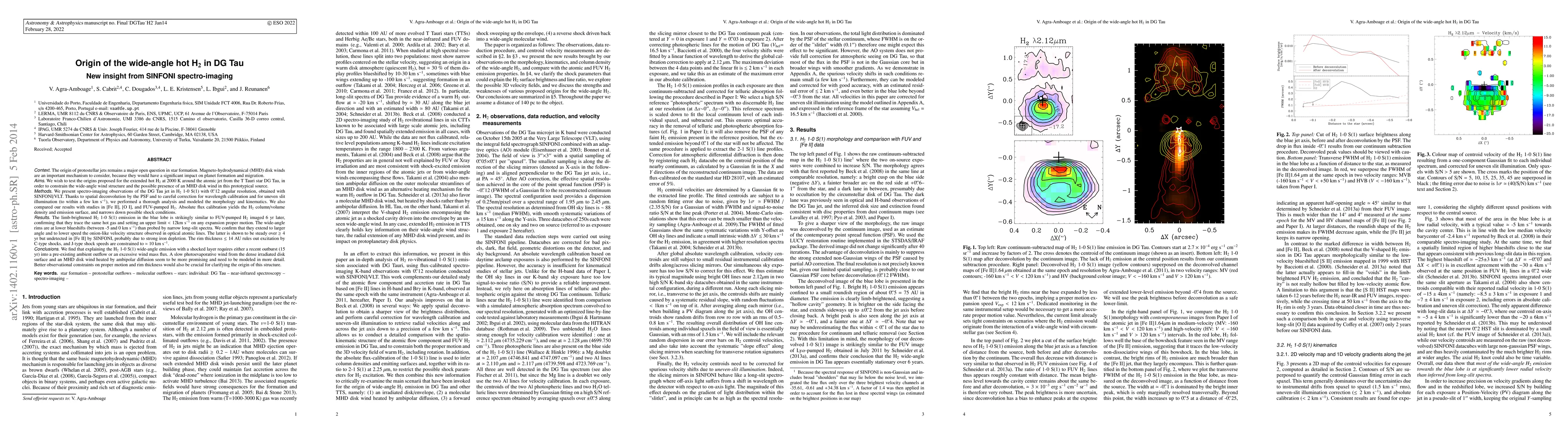 We wish to test the origins proposed for the extended hot H2 at 2000K around the atomic jet from the T Tauri star DGTau, in order to constrain the wide-angle wind structure and the possible presence of an MHD disk wind. We present flux calibrated IFS observations in H2 1-0 S(1) obtained with SINFONI/VLT. Thanks to spatial deconvolution by the PSF and to accurate correction for uneven slit illumination, we performed a thorough analysis and modeled the morphology, kinematics, and surface brightness. We also compared our results with studies in [FeII], [OI], and FUV-pumped H2. The limb-brightened H2 emission in the blue lobe is strikingly similar to FUV-pumped H2 imaged 6yr later, confirming that they trace the same hot gas and setting an upper limit of 12km/s on any expansion proper motion. The wide-angle H2 rims are at lower blueshifts than probed by narrow long-slit spectra. We confirm that they extend to larger angle and to lower speed the onion-like velocity structure observed in optical atomic lines. The latter is shown to be steady over more/equal than 4yr but undetected in [FeII] by SINFONI, probably due to strong iron depletion. The H2 rim thickness less/equal than 14AU rules out excitation by C-shocks, and J-shock speeds are constrained to 10km/s. We find that explaining the H2 wide-angle emission with a shocked layer requires either a recent outburst (15yr) into a pre-existing ambient outflow or an excessive wind mass flux. A slow photoevaporative wind from the dense irradiated disk surface and an MHD disk wind heated by ambipolar diffusion seem to be more promising and need to be modeled in more detail.