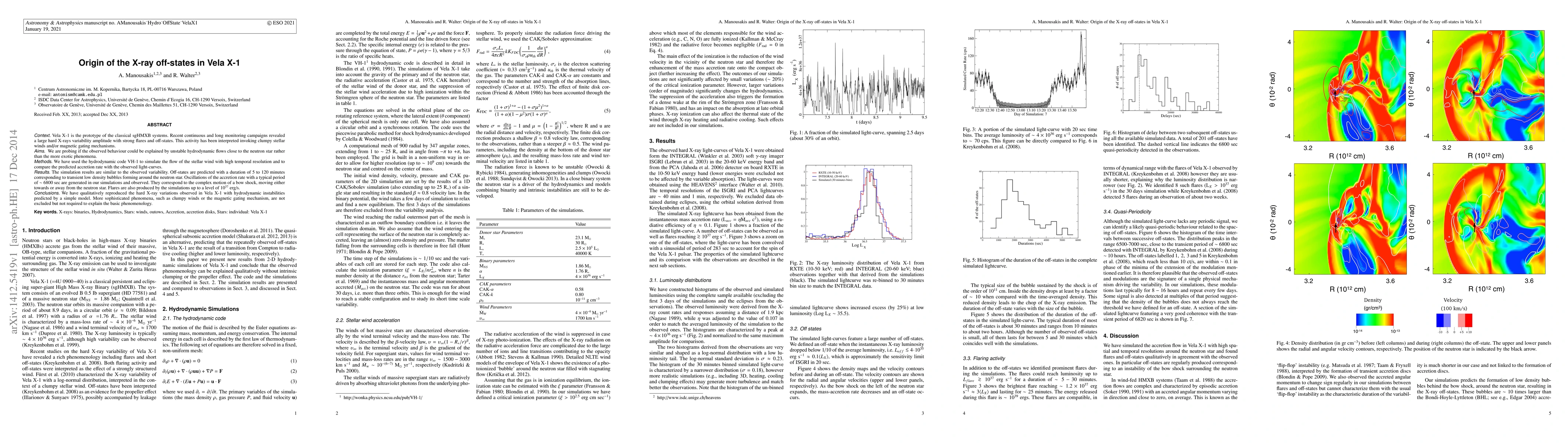 Researchers used a hydrodynamic model to simulate Vela X-1's behavior, finding that unstable flows near the neutron star can reproduce the observed hard X-ray variability, including off-states and flares.