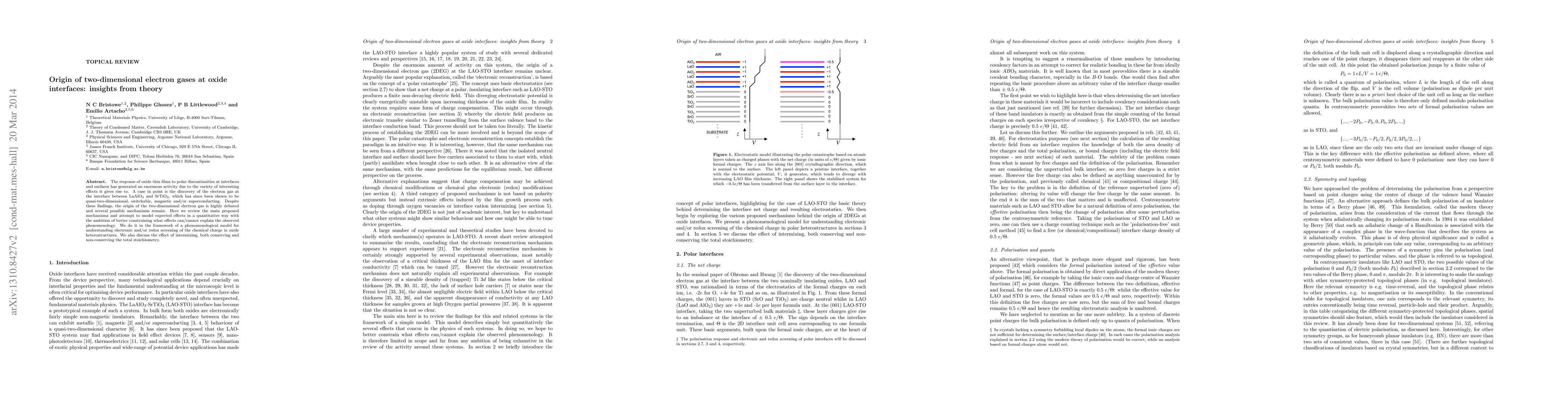 This paper reviews proposed mechanisms for the origin of two-dimensional electron gases at oxide interfaces, focusing on the interface between LaAlO3 and SrTiO3. It aims to quantitatively model these mechanisms to better understand the observed phenomena, considering factors like electronic and redox screening, and the impact of intermixing on the interface.