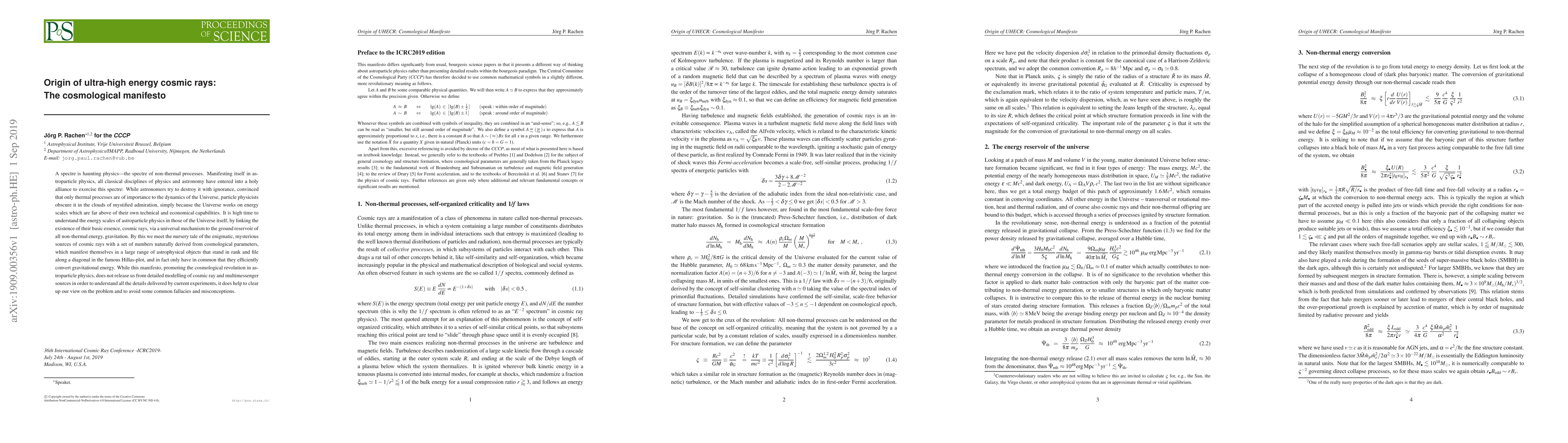 A spectre is haunting physics---the spectre of non-thermal processes. Manifesting itself in astroparticle physics, all classical disciplines of physics and astronomy have entered into a holy alliance to exorcise this spectre: While astronomers try to destroy it with ignorance, convinced that only thermal processes are of importance to the dynamics of the Universe, particle physicists obscure it in the clouds of mystified admiration, simply because the Universe works on energy scales which are far above of their own technical and economical capabilities. It is high time to understand the energy scales of astroparticle physics in those of the Universe itself, by linking the existence of their basic essence, cosmic rays, via a universal mechanism to the ground reservoir of all non-thermal energy, gravitation. By this we meet the nursery tale of the enigmatic, mysterious sources of cosmic rays with a set of numbers naturally derived from cosmological parameters, which manifest themselves in a large range of astrophysical objects that stand in rank and file along a diagonal in the famous Hillas-plot, and in fact only have in common that they efficiently convert gravitational energy. While this manifesto, promoting the cosmological revolution in astroparticle physics, does not release us from detailed modelling of cosmic ray and multimessenger sources in order to understand all the details delivered by current experiments, it does help to clear up our view on the problem and to avoid some common fallacies and misconceptions.