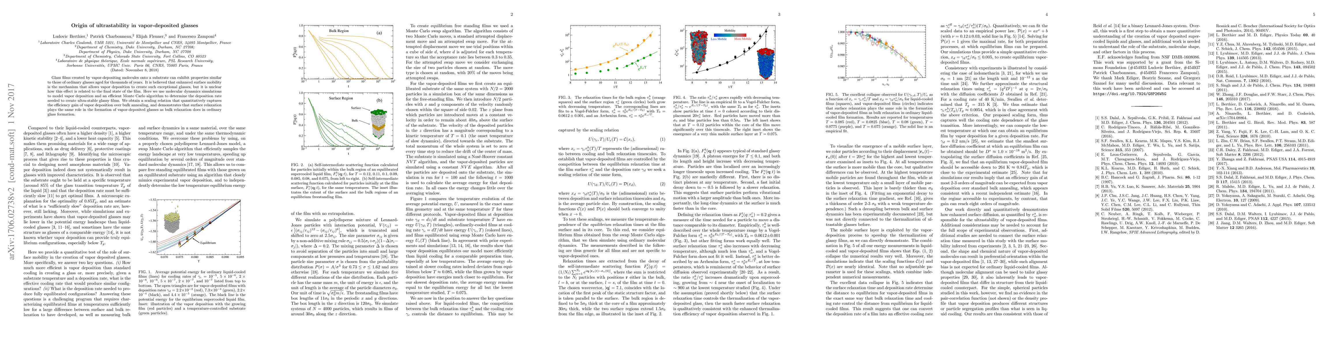 This paper explores the origin of ultrastability in vapor-deposited glasses, revealing that enhanced surface mobility during vapor deposition leads to exceptional stability akin to naturally aged glasses. Using molecular dynamics simulations and Monte Carlo algorithms, the study establishes a scaling relation that highlights the efficiency of vapor deposition compared to traditional annealing, showing that surface relaxation is crucial for forming stable vapor-deposited glasses.